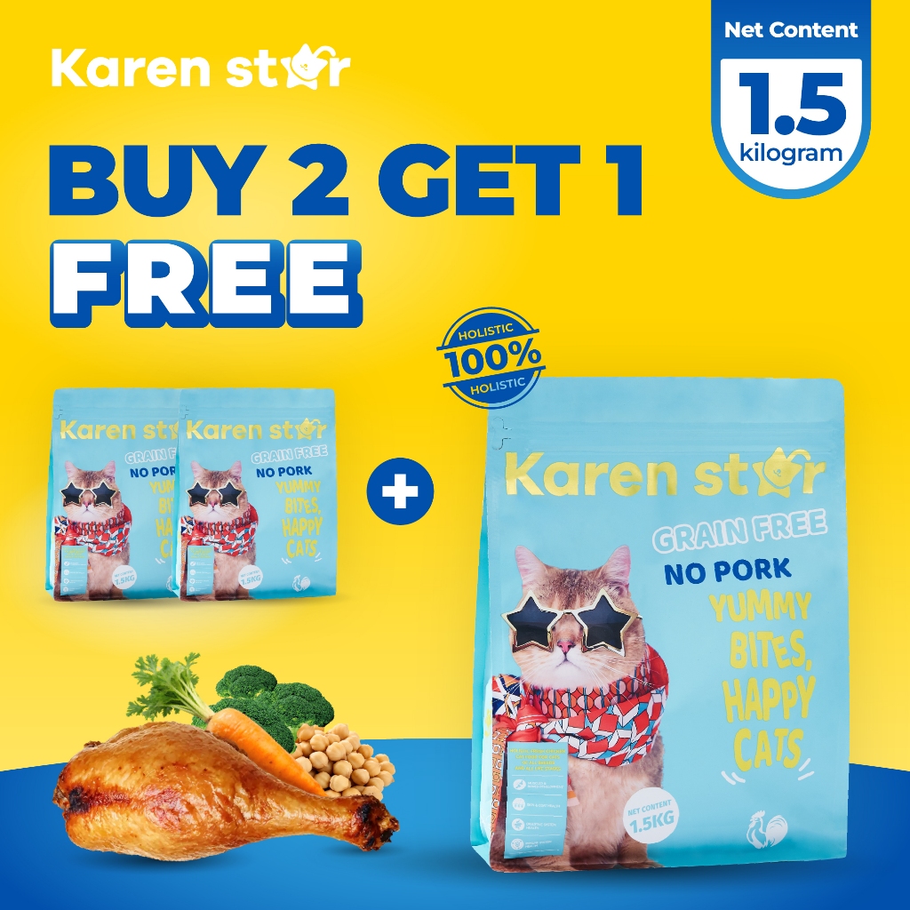 Karen Star Makanan Kucing Holistic Premium Kering Rasa Ayam Chicken Cat Food 1500gr 1.5kg