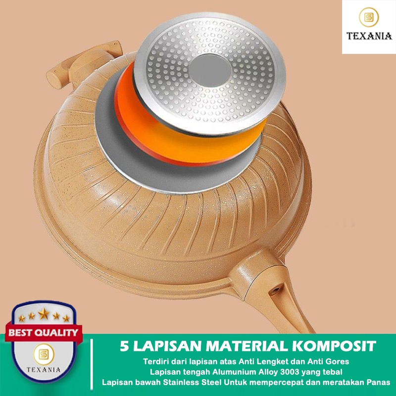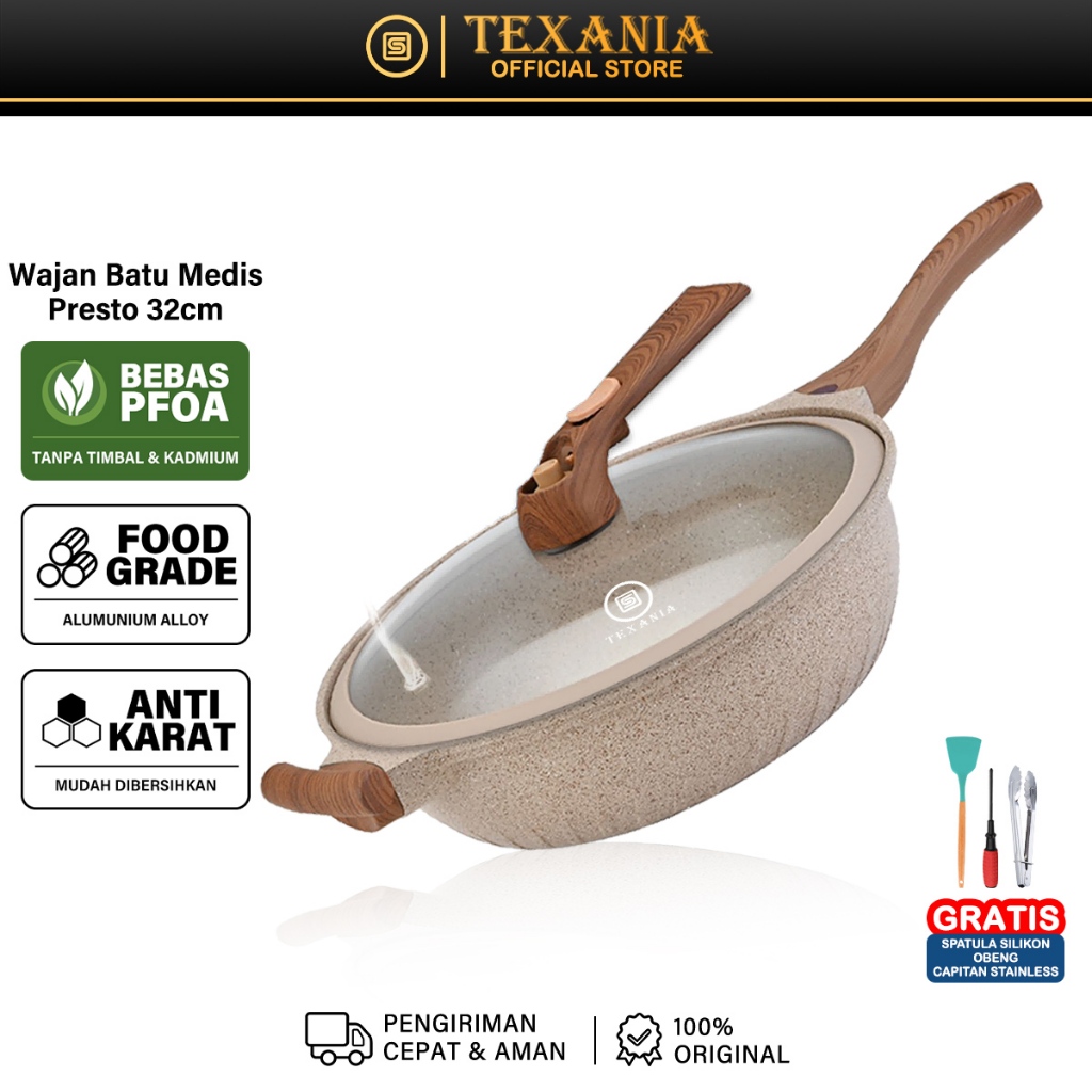 TEXANIA Wajan Batu Medis Presto 32cm Bahan Alumunium Quick Heat 2in1 3003 Double Bottom Free Spatula Silikon+Capitan Sta
