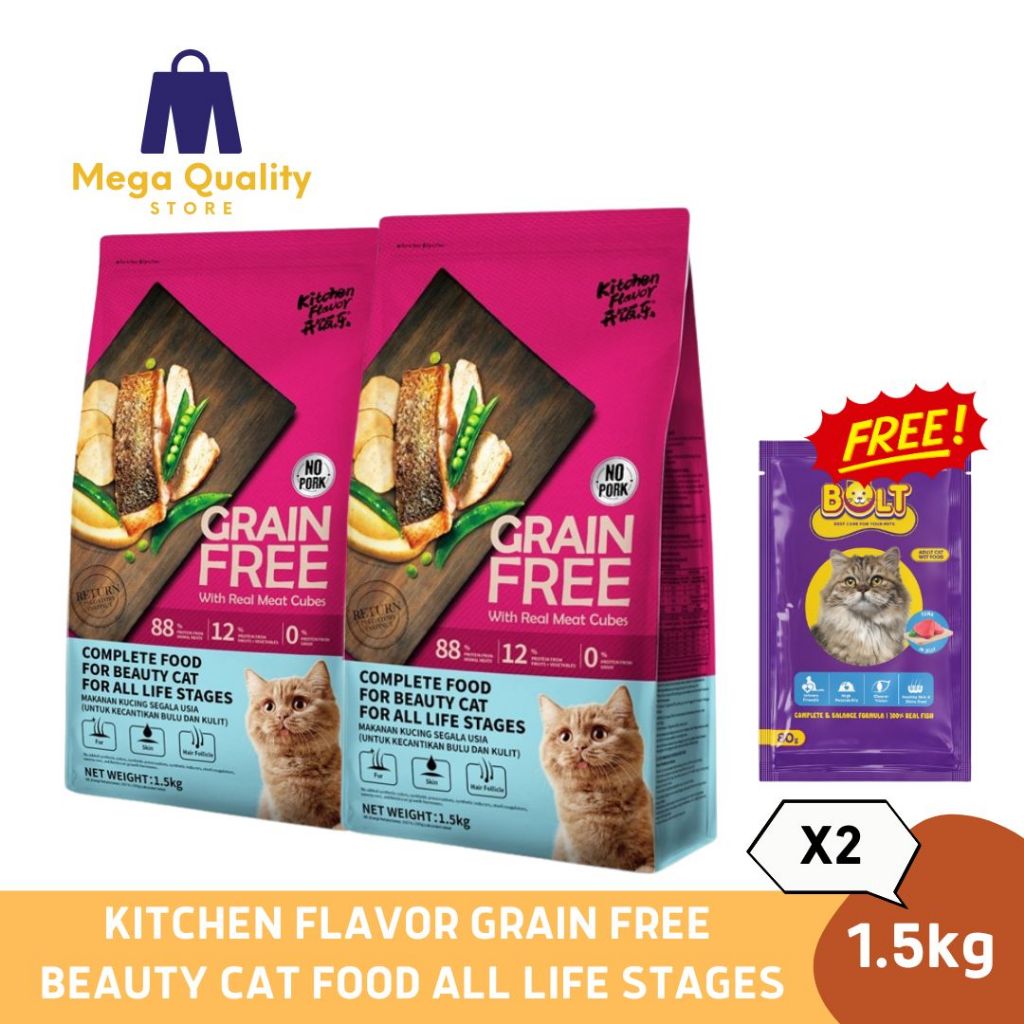 KF Beauty Cat Food 1.5kg isi 2 + Free Bolt Adult Cat Tuna Jelly Pouch 80gr