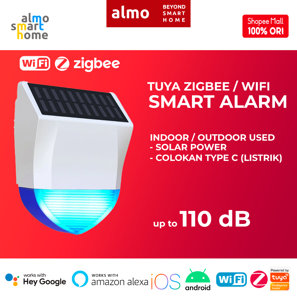 ALMO Tuya WiFi ZigBee Smart Wireless Siren Alarm Outdoor Solar Power
