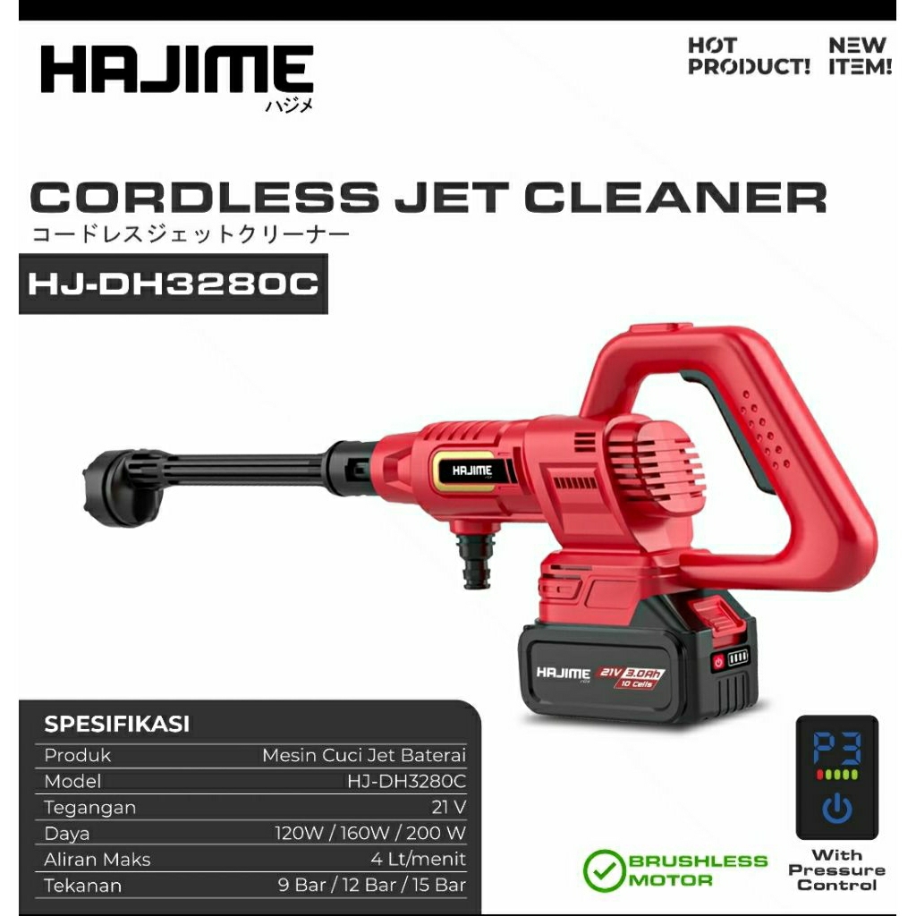 Jet Cleaner HAJIME - Jet Cleaner Cordless Brushless Motor Variable Pressure 3 Speed HJ-DH3280C