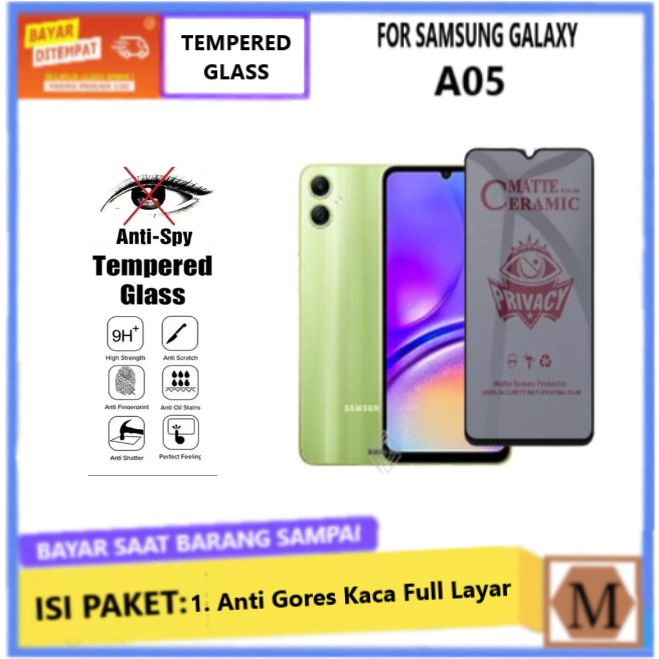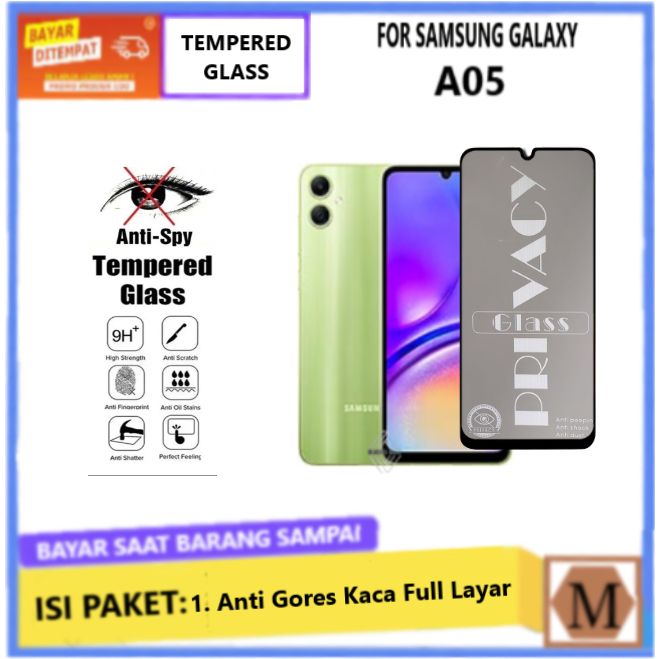 Tempered Glass Anti Spy Samsung Galaxy A05 Anti Gores Privacy Full Layar Anti Intip Anti Minyak Anti Pecah
