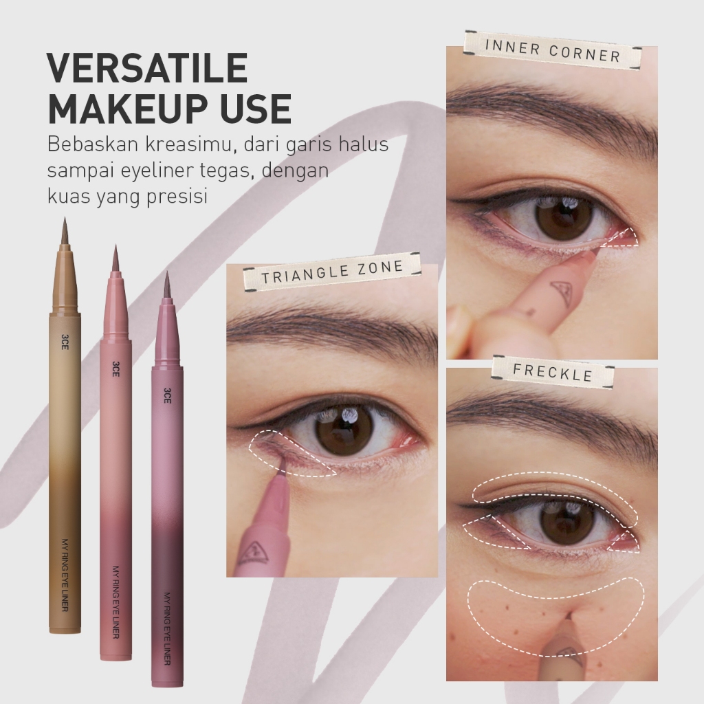 EYELINER 3CE OFFICIAL MY RING WATERPROOF SWEATPROOF BEBAS LUNTUR TAHAN LAMA 24H LIQUID PEN CONTACT LENS TO EYELINER MAKE