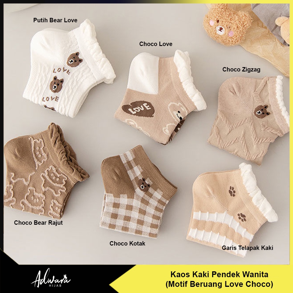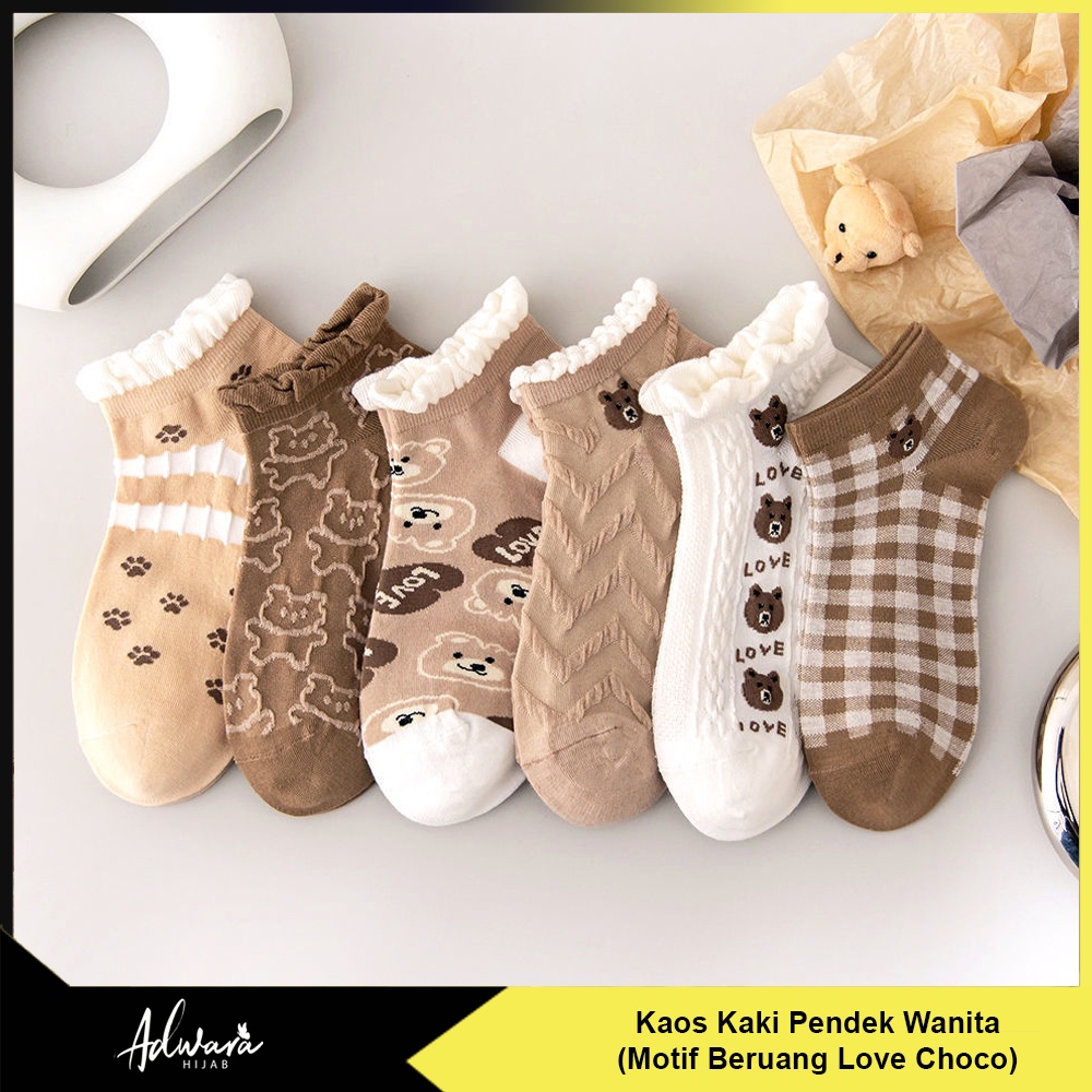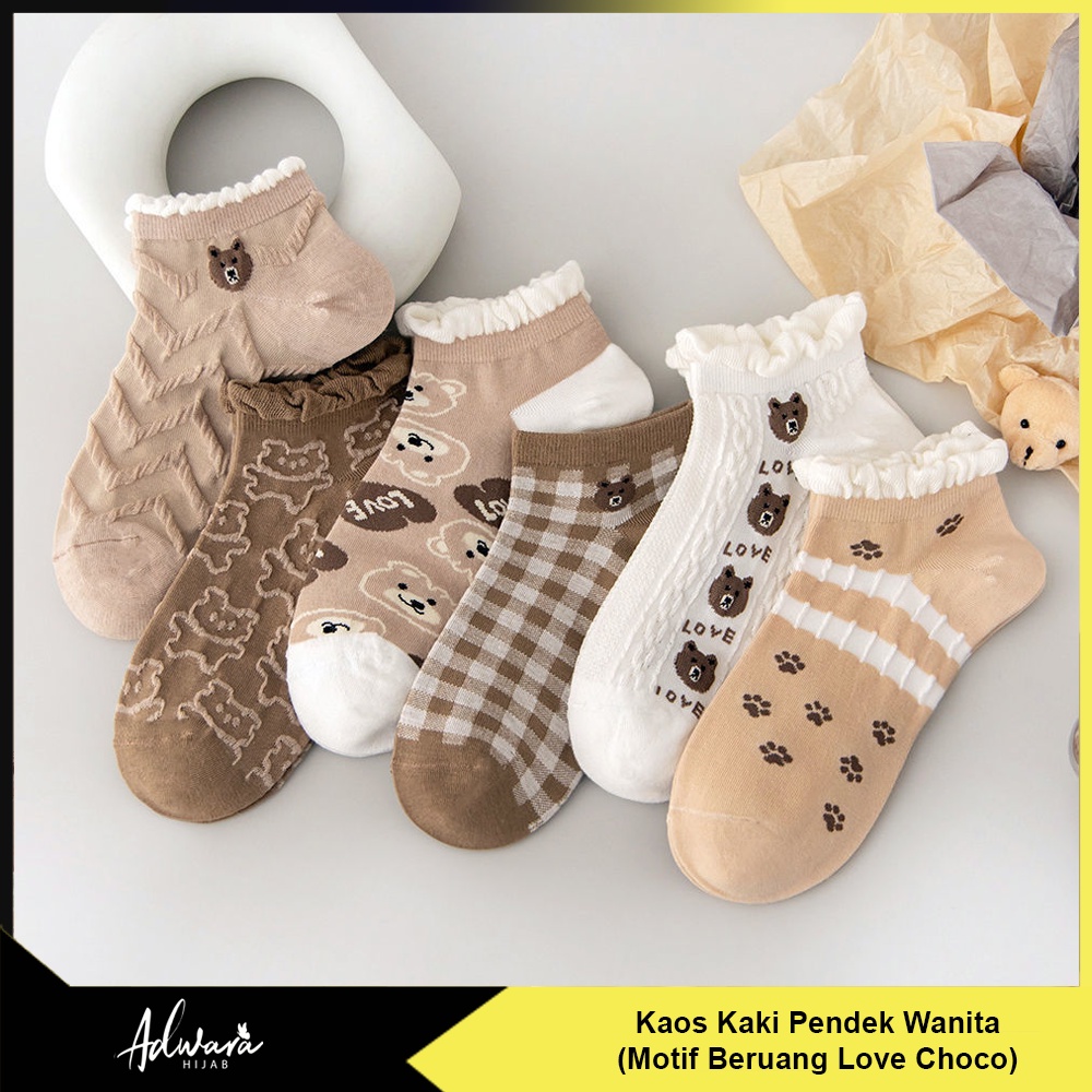 Kaos Kaki Pendek Choco Bear Love / Kaos Kaki Wanita Gaya Fashion Korea