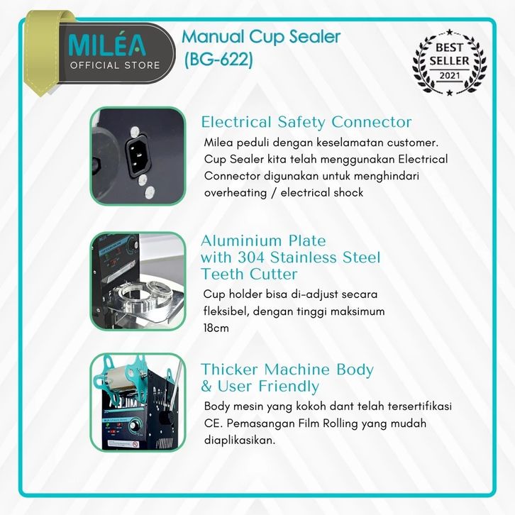 Mesin Cup Sealer Manual Press Cup Sealer Mesin Press Tutup Gelas Plastik Up To 22oz Bg-622