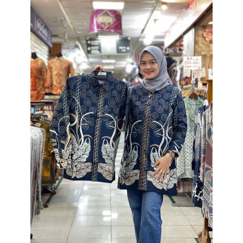 ATASAN BATIK LENGAN PANJANG COUPLE PRIA WANITA BATIK KATUN FULL LAPISAN TRIKOT UKURAN S-XXXXL