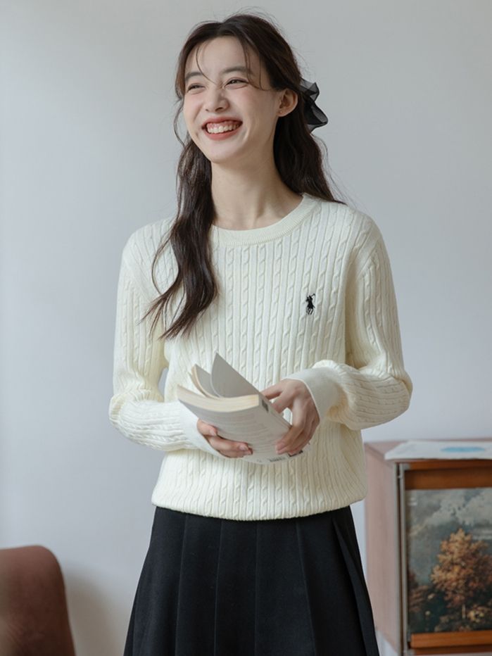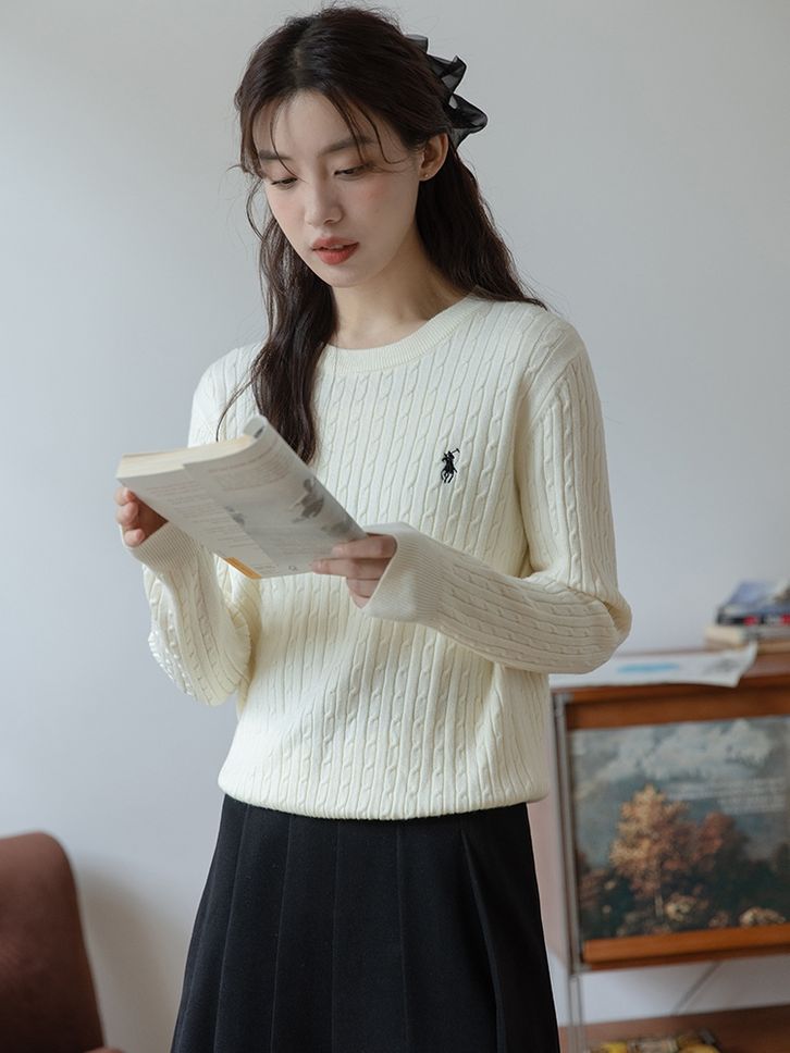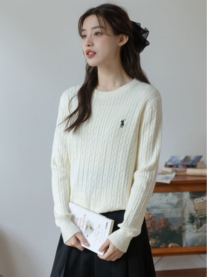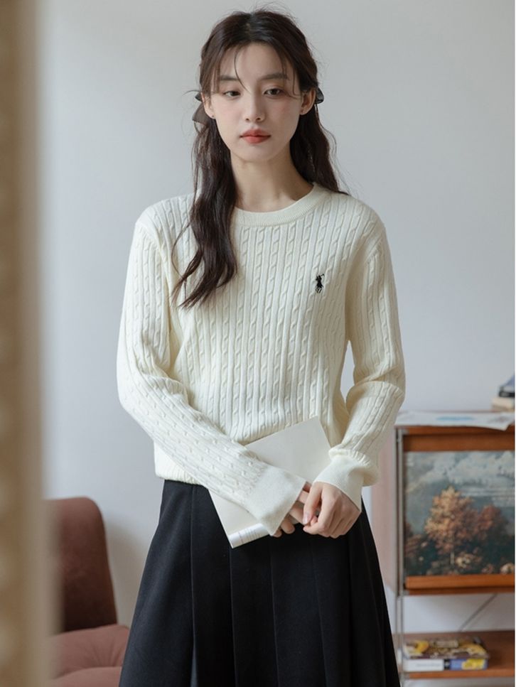 Sweater Crewneck Rajut Wol Kepang Koreaan Look ROSELLA