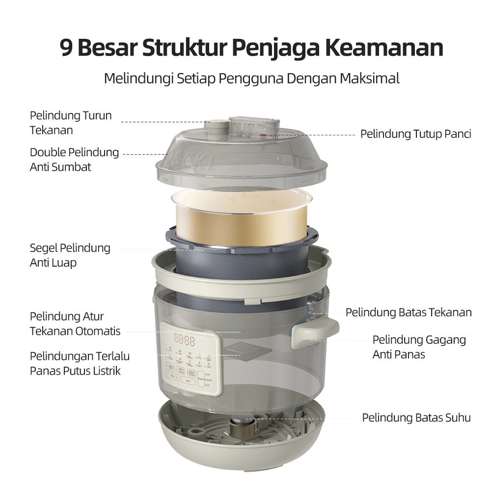 SOSEKI Panci Presto Listrik Multifungsi 1.2L / 10 Menu Pressure Cooker Fitur Lepas Tekanan Otomatis/Presto daging