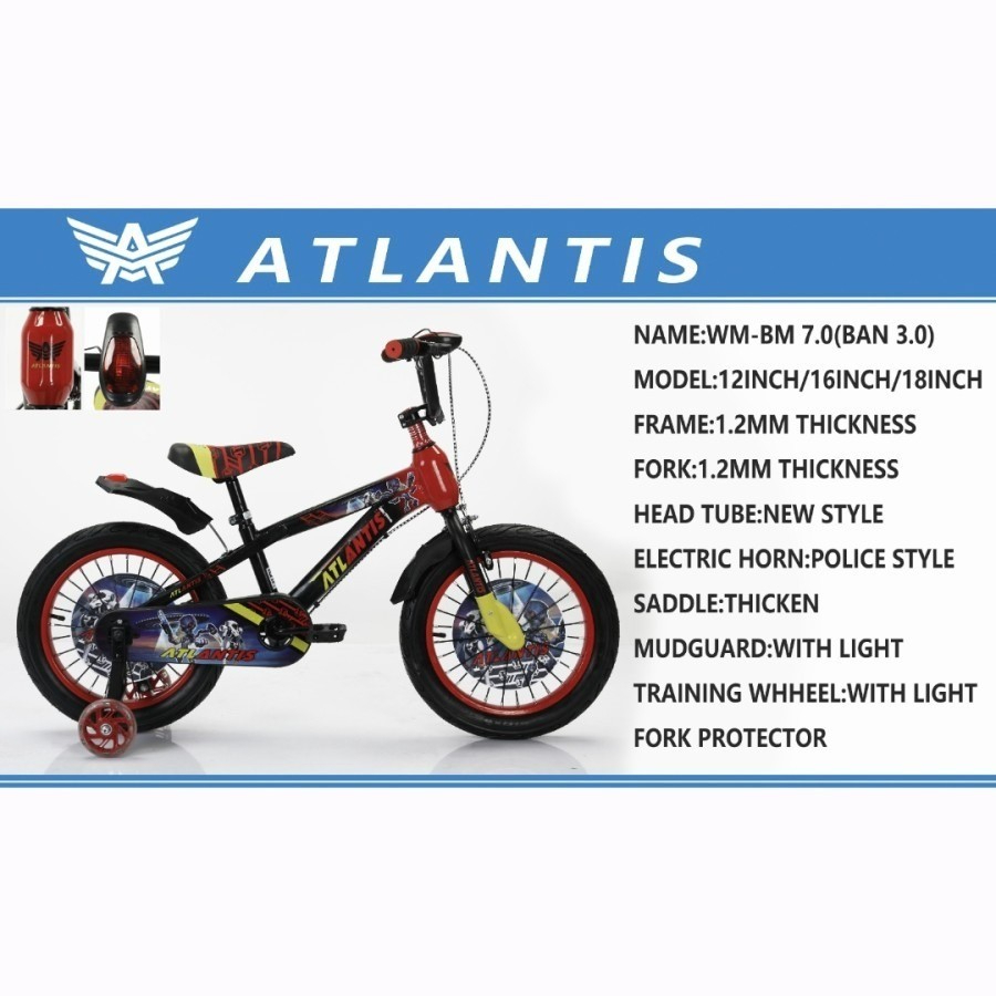 SEPEDA ANAK 3 4 5 6 7 8 TAHUN BMX ATLANTIS BM 7.0 BAN JUMBO DENGAN MUSIK + LAMPU FREE BOTOL MURAH BERKUALITAS TANPA DP
