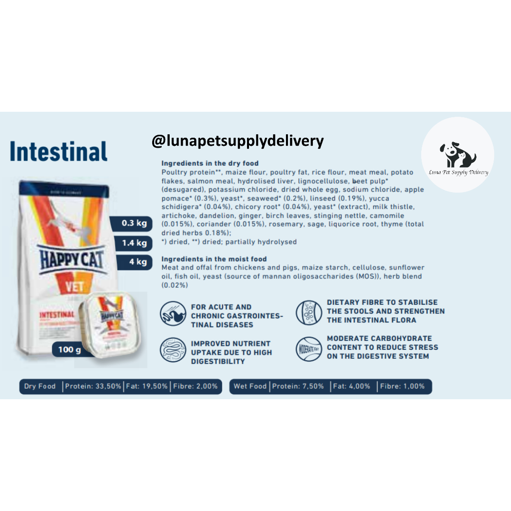 Happy Cat Vet Intestinal REPACK 300 GR Makanan Kucing Diare dan Muntah