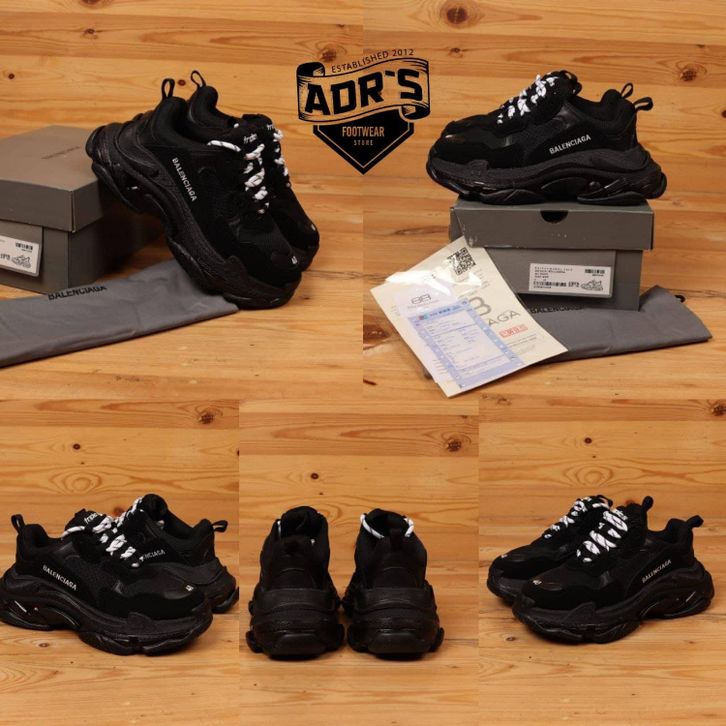 Sepatu Pria BALENCIAGA TRIPLE S ALL BLACK Sepatu Sneakers Premium Best Seller