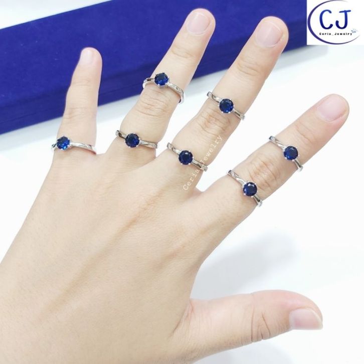 Cincin Perak Asli 925 Lapis Emas Putih Model Soliter Permata Putih Dan Permata Biru - Perhiasan Perak Asli