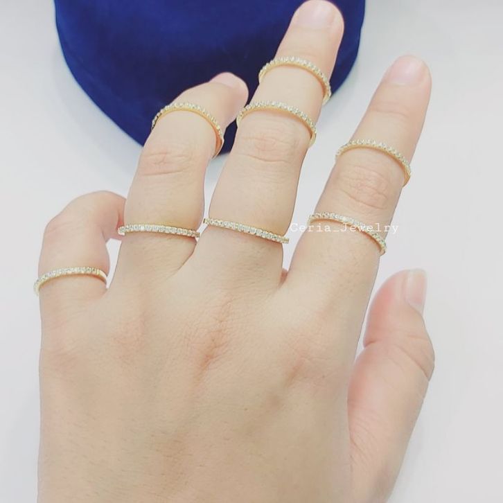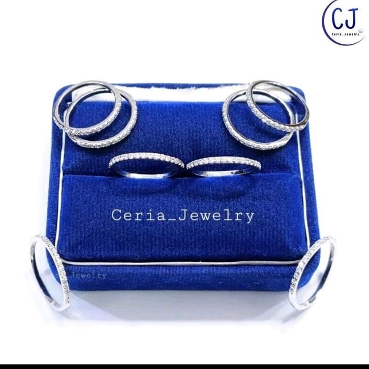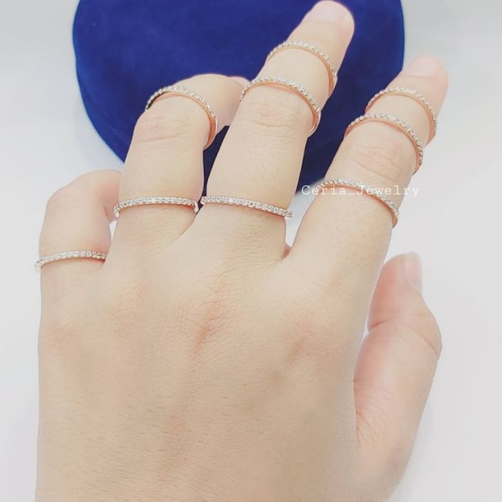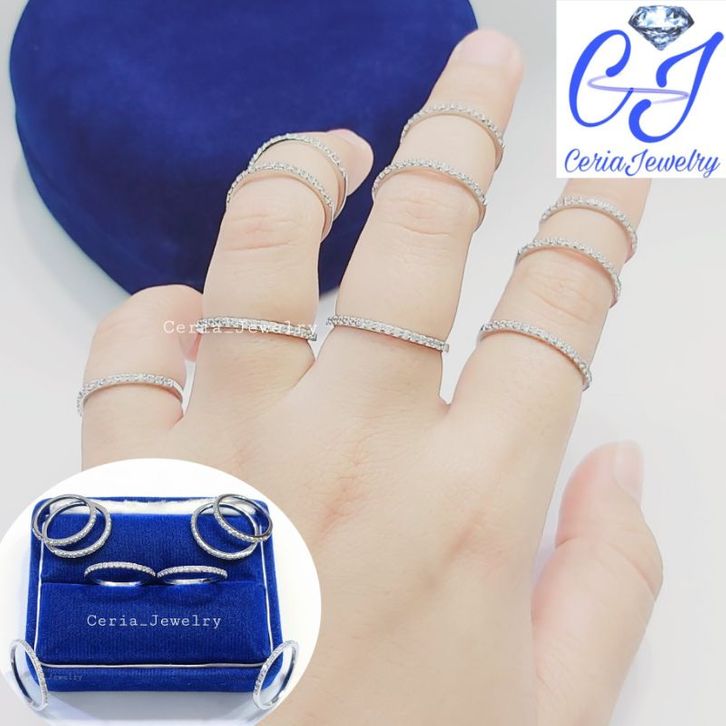 Cincin Perak Wanita Asli Silver 925 Lapis Emas Putih Model Listring Satu Baris Permata - Cincin Nagita - Cincin Fuji