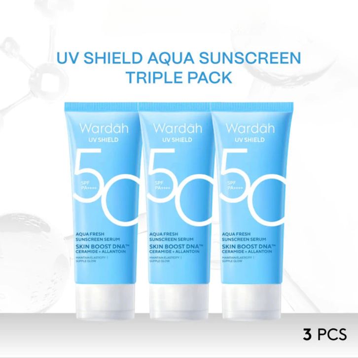 TRIPLE PACK Wardah UV Shield Sunscreen Gel SPF35/SPF 50 | Acne Calming | Essensial Gel | Airy Smooth | Tone Up | Physic