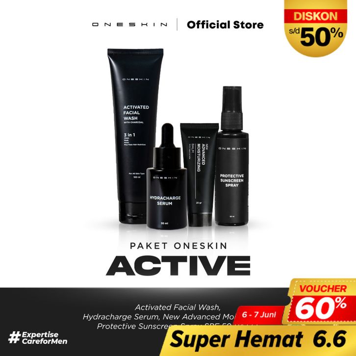Oneskin Paket Active Facial Wash, Serum, Moisturizer & Sunscreen