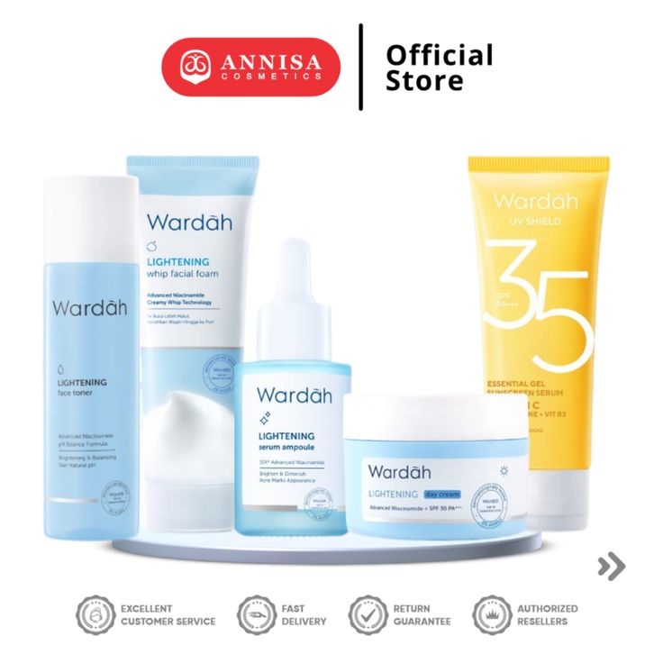 Wardah Brightening Booster SET Lightening Whip 100 ml, Lightening Day 30 g, Lightening Ampoule 30 ml, UV Sunscreen Gel