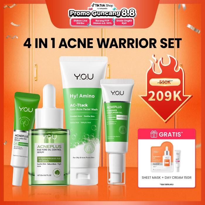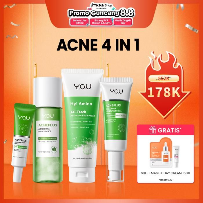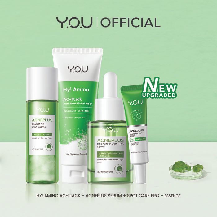 FREE GIFT YOU Acne 4in1 Bundle Acne plus Essence Spot Care Skin Cream Moisturizer& HyAmino Facial Wash Skincare Perawat