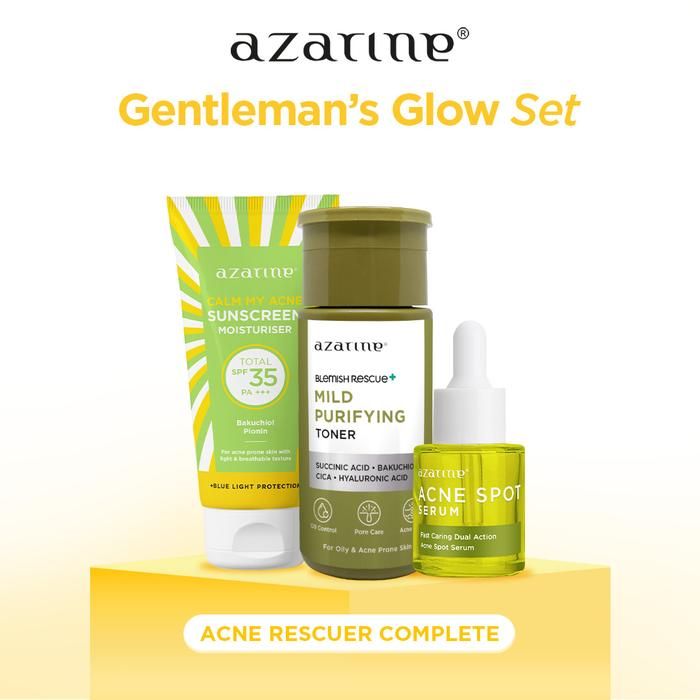 Azarine Gentleman's Glow Set Sunscreen + Toner + Serum Berjerawat Aging Mencerahkan Wajah Hydrating - ACNE RESCUER COMP