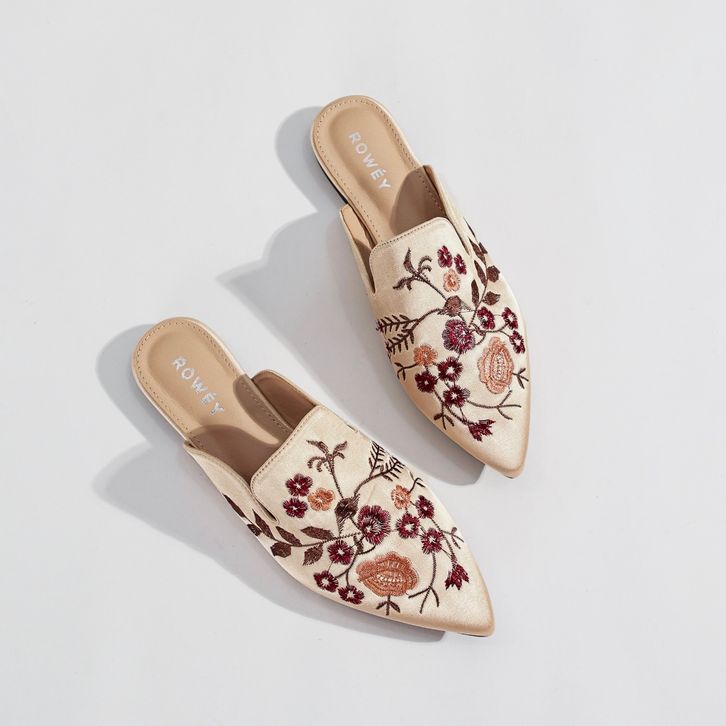 Rowey Sepatu Sandal Bordir Flat Wanita Mewah Dan Elegant Monalisa
