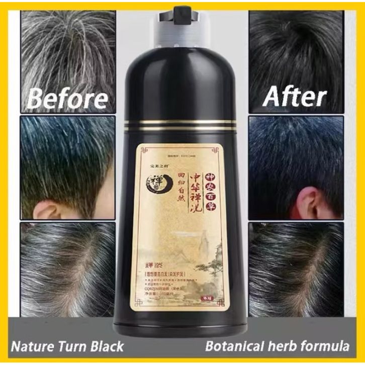 ZEIN chanyi shampoo Penghilang Uban Original Black Extract Gingseng & Tea Bran 500mili