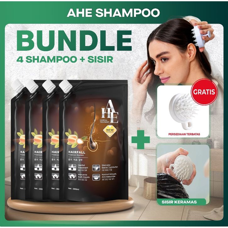 Free Gift Bundling 4 AHE Hairfall Treatment Shampoo X Free Gift Silicone Scalp Massager Comb Wash.