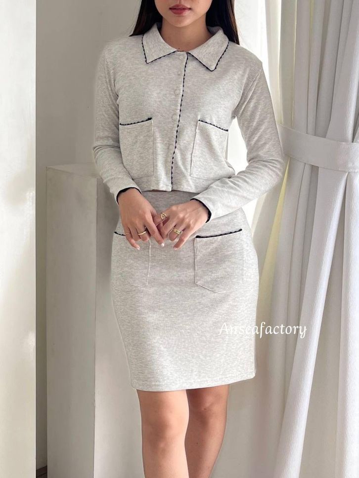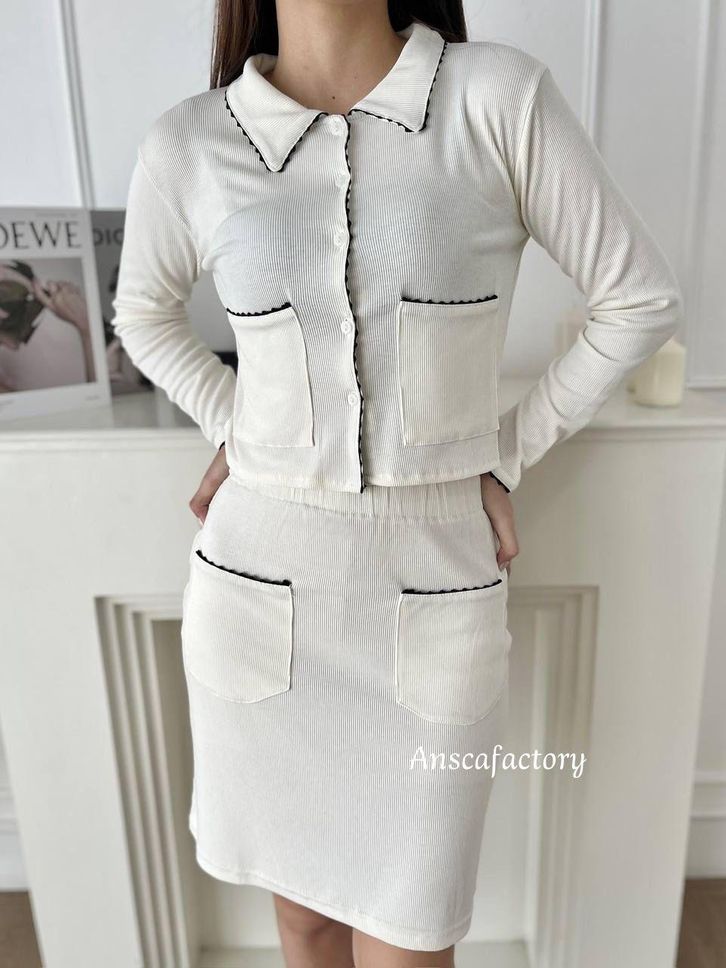@nscafactory - Vyora Top 3139 - Atasan Wanita Polo Knit - Crop Top Frill Pattern Cardigan Button Long Sleeve