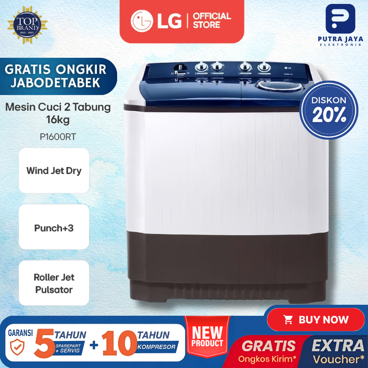 [Star] LG Mesin Cuci 2 Tabung Low Watt Murah Tanpa DP Dw 8 9 10 12 14 KG Mini Sharp Aqua Denpoo Official Store