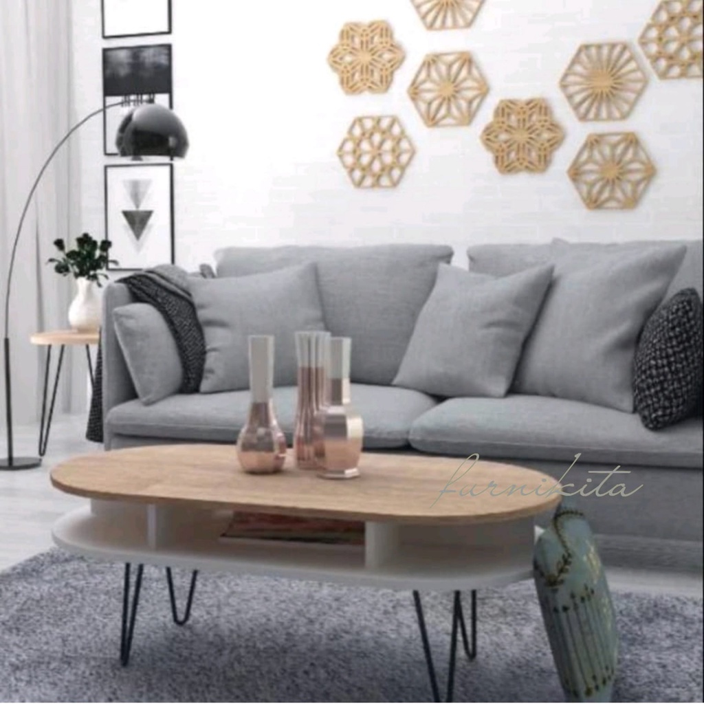 COFFEE TABLE MEJA RUANG TAMU KAKI BESI MINIMALIS CT 278