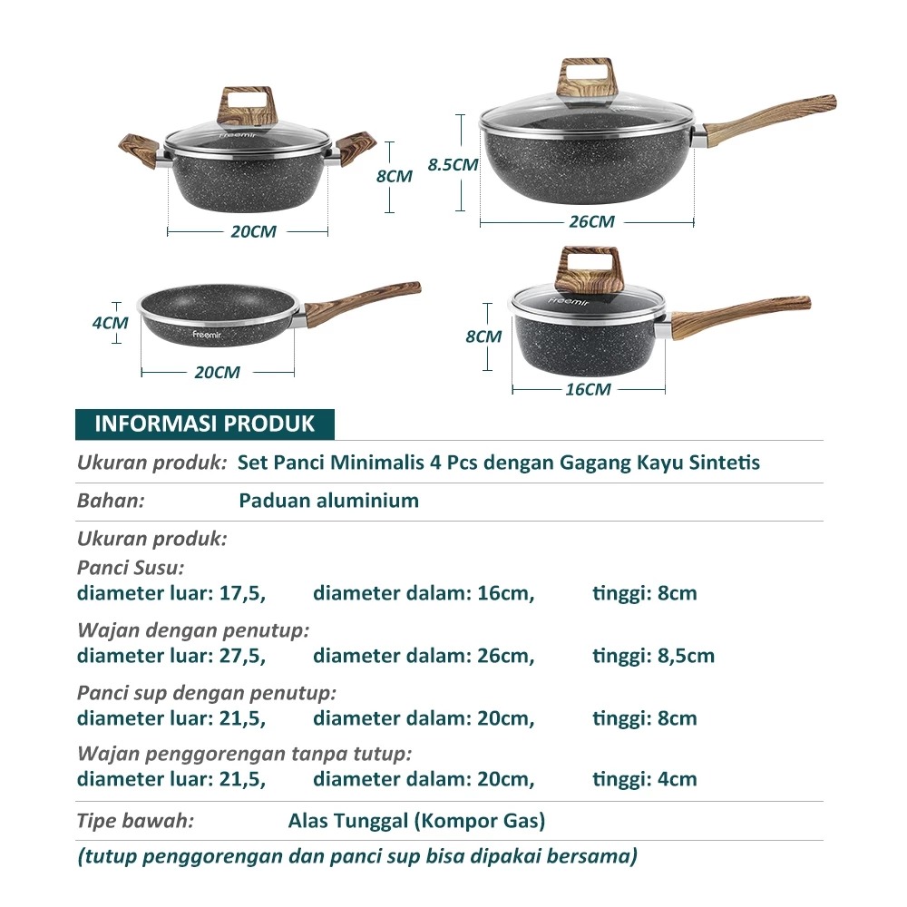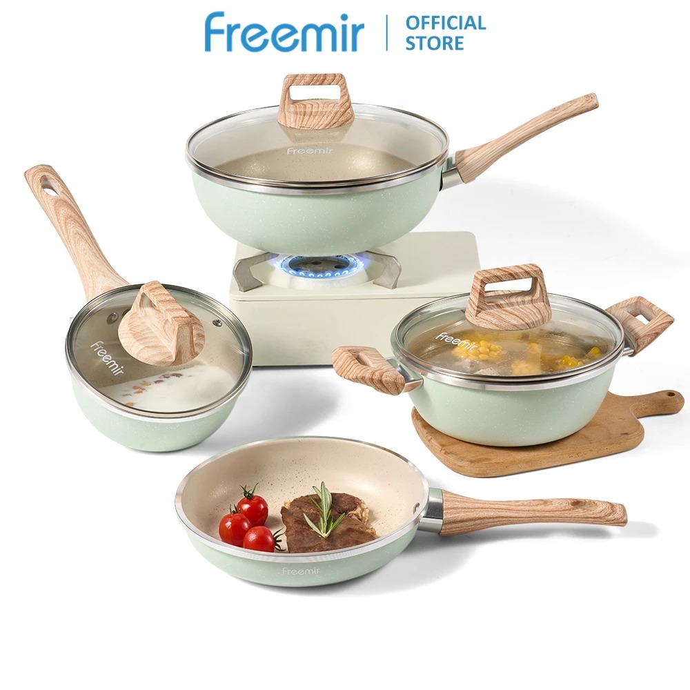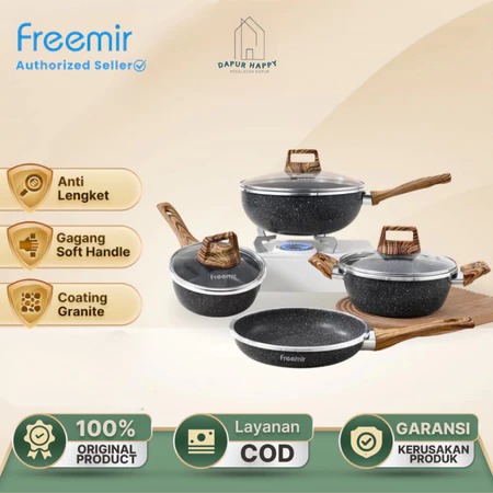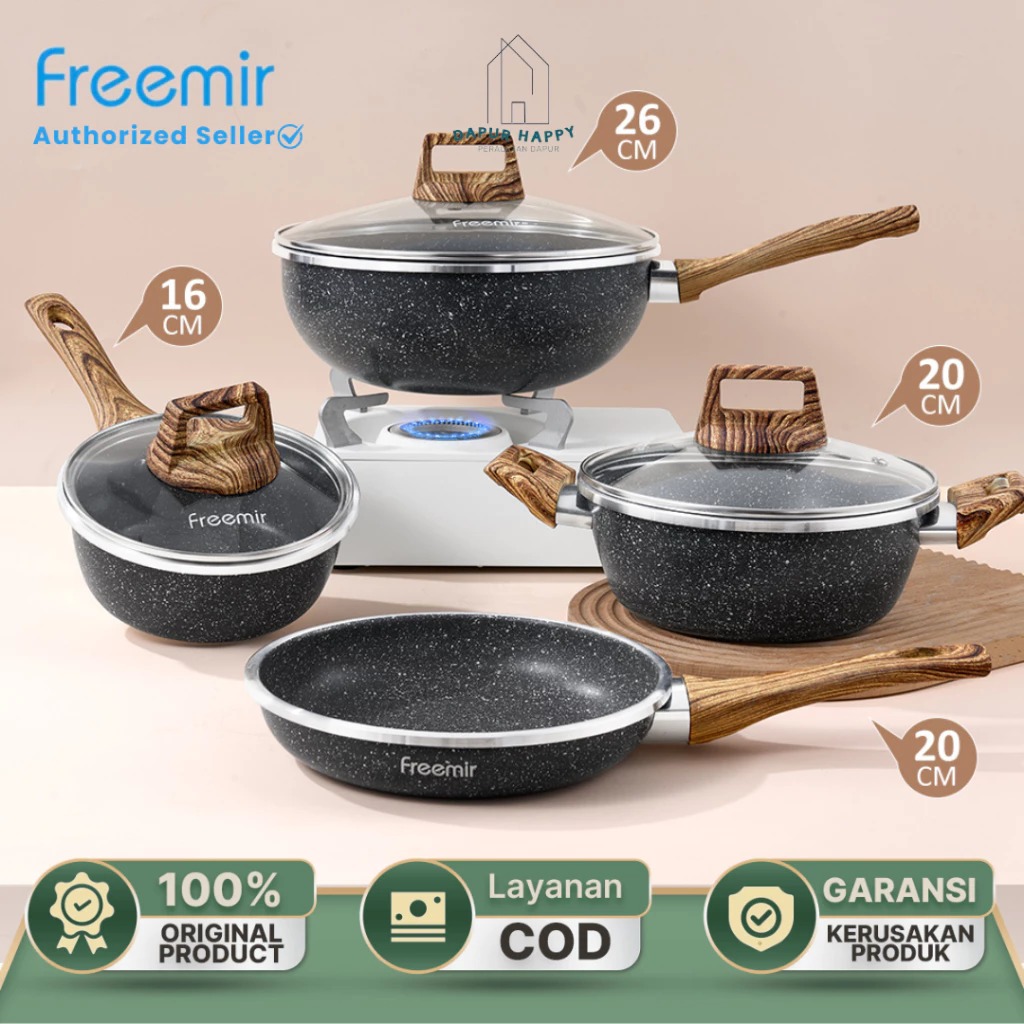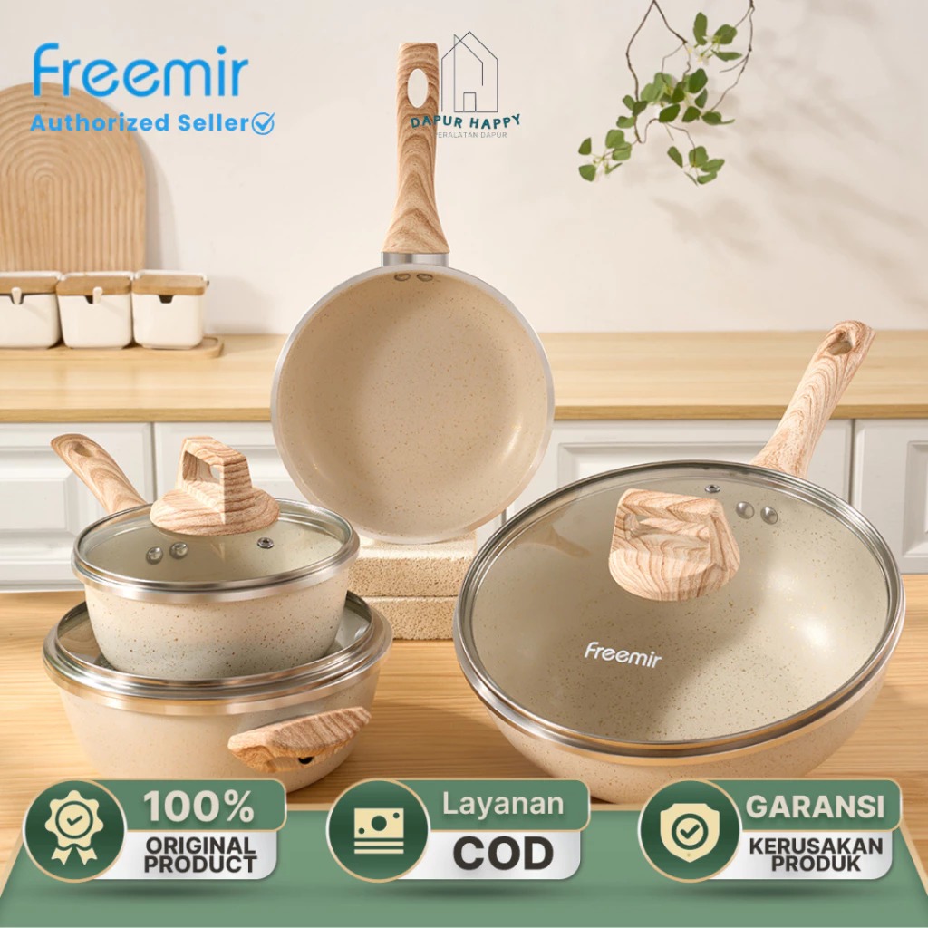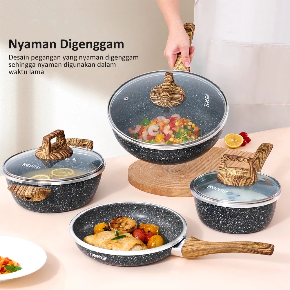 Beedooshop - Panci - Panci set - freemir single bottom Paket OKB Hitam/Beige/Hijau Wajan Anti Lengket 1 Set Isi 7pcs set