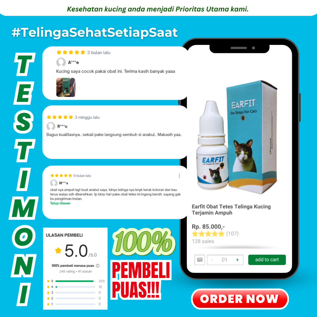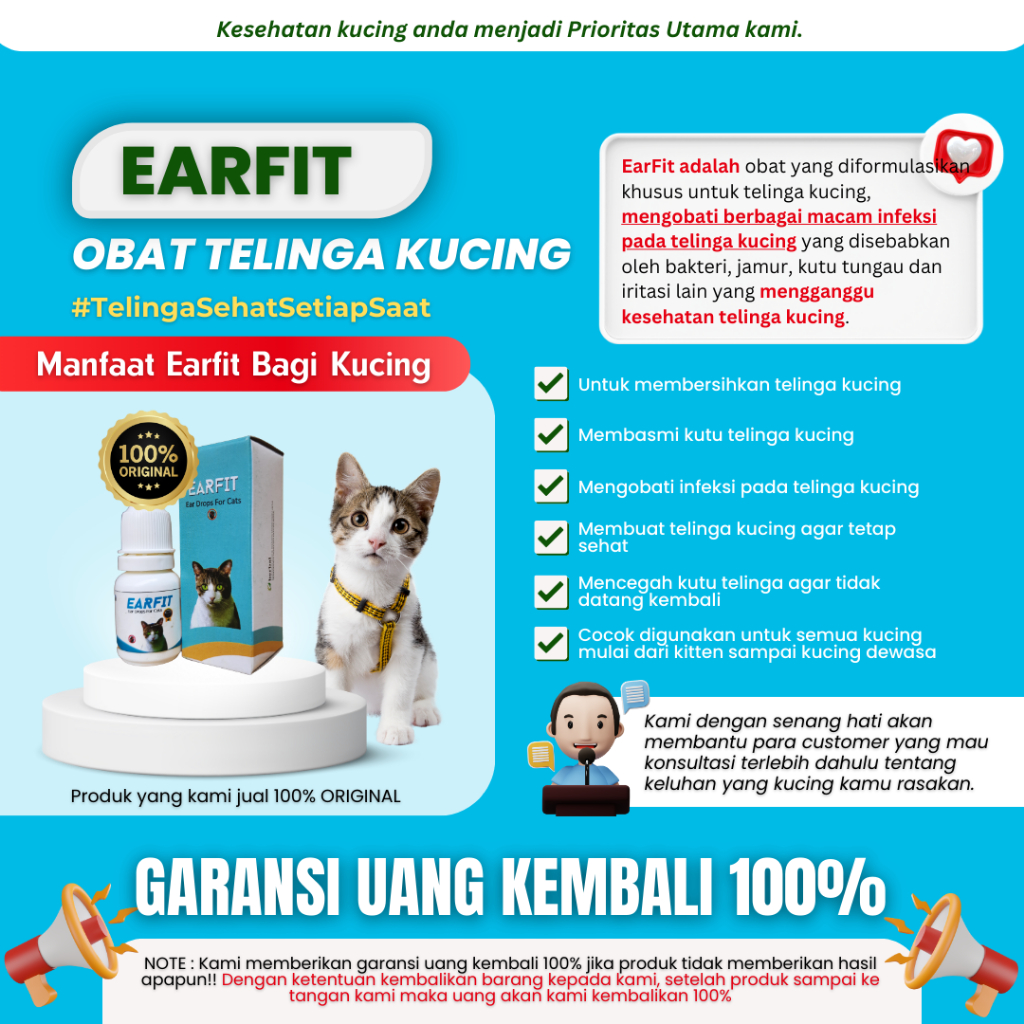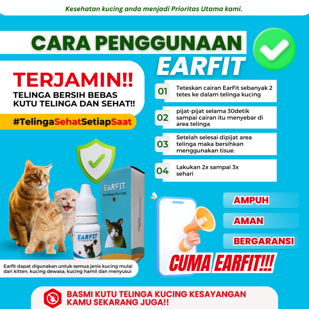 EARFIT Obat Tungau Kutu Telinga Kucing Earmites Ampuh Mengobati Conge Otitis Kuping Kucing