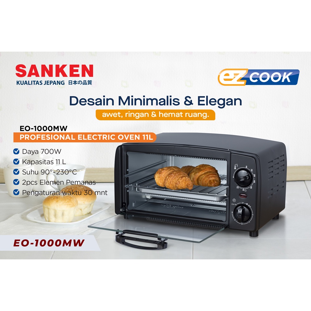 NEW ORIGINAL Sanken Oven Listrik EO-1000MW Electric Oven 11 Liter Hitam