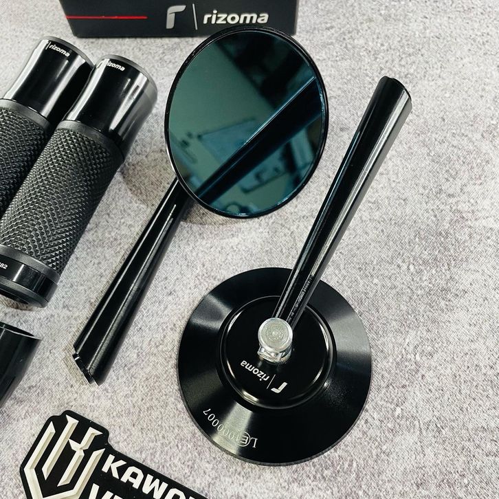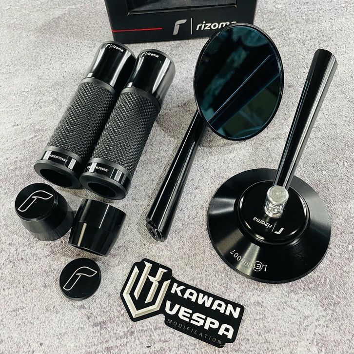Kaca Spion Vespa Original Paket Spion Rizoma Retro Classic CNC + handgrip rizoma Black Universal - Vespa sprint primave