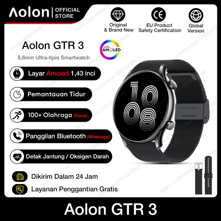 [Mall] Aolon GTR3 Smart Watch Jam Running Pria Pace Compass 1.6 inch Full Screen Bluetooth Call 100+ Smartwatch Keren