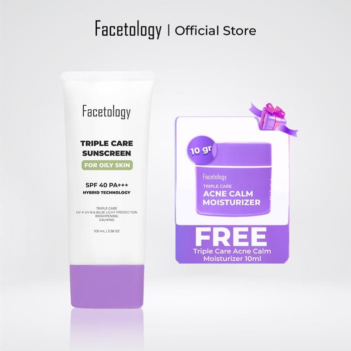 Free Acne Calm Moist 10GR Facetology Triple Care Sunscreen For Acne & Oily Skin SPF 40 PA++++ 100ml untuk wajah berminy