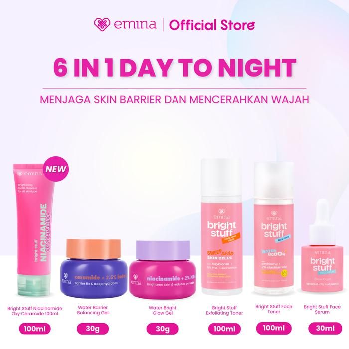 Emina Day&Night 6in1 Glowing Set Bundle - Cleanser + Brightening moisturizer + serum + toner + exfoliating - Retinart S