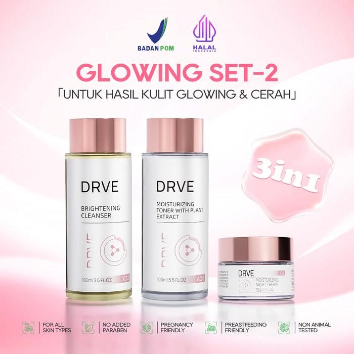 Drve Whitening Kit Bundle 3 Brightening Cleanser+Moisturizing Toner With Plant Extract+Moisturizing Night Cream dengan