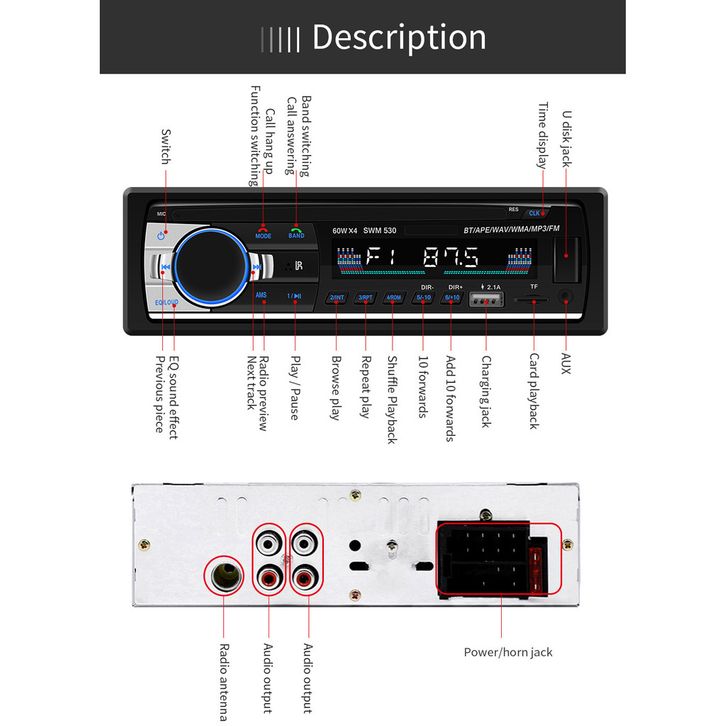 【Stok Siap】Taffware Tape Audio Mobil Audio MP3 Bluetooth Wireless Receiver 12V - MP3-530