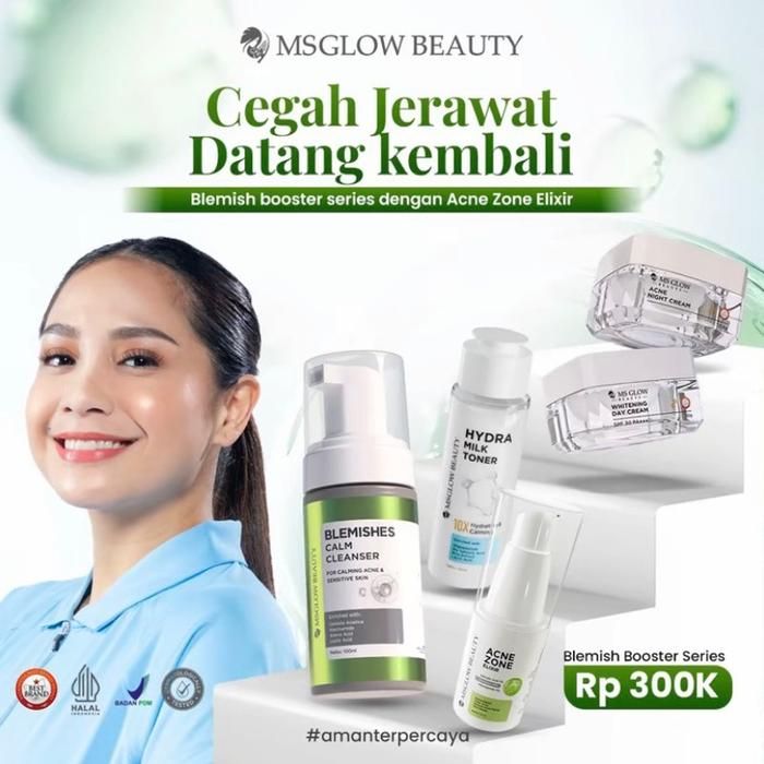 Ms Glow Paket Wajah NEW PACKAGE BOOSTER SERIES + ELIXIR SERUM perawatan mencerahkan wajah kusam kerutan jerawat Hitam P