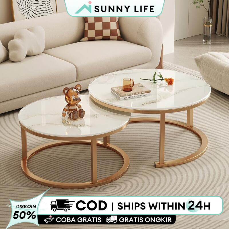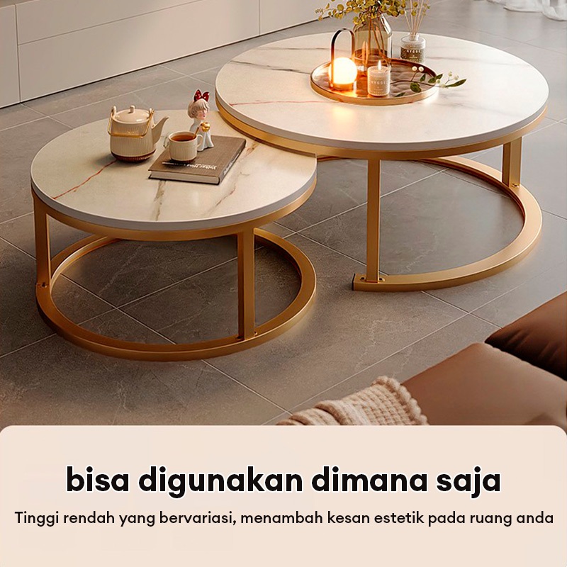 Meja Tamu Meja Ruang Tamu Marmer Meja Bulat Minimalis Meja Samping Meja Tamu Minimalis Meja Kopi Kombinasi 2-in-1
