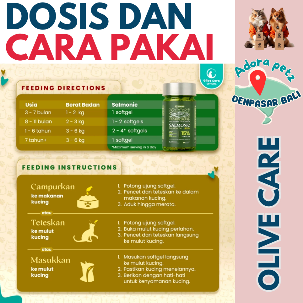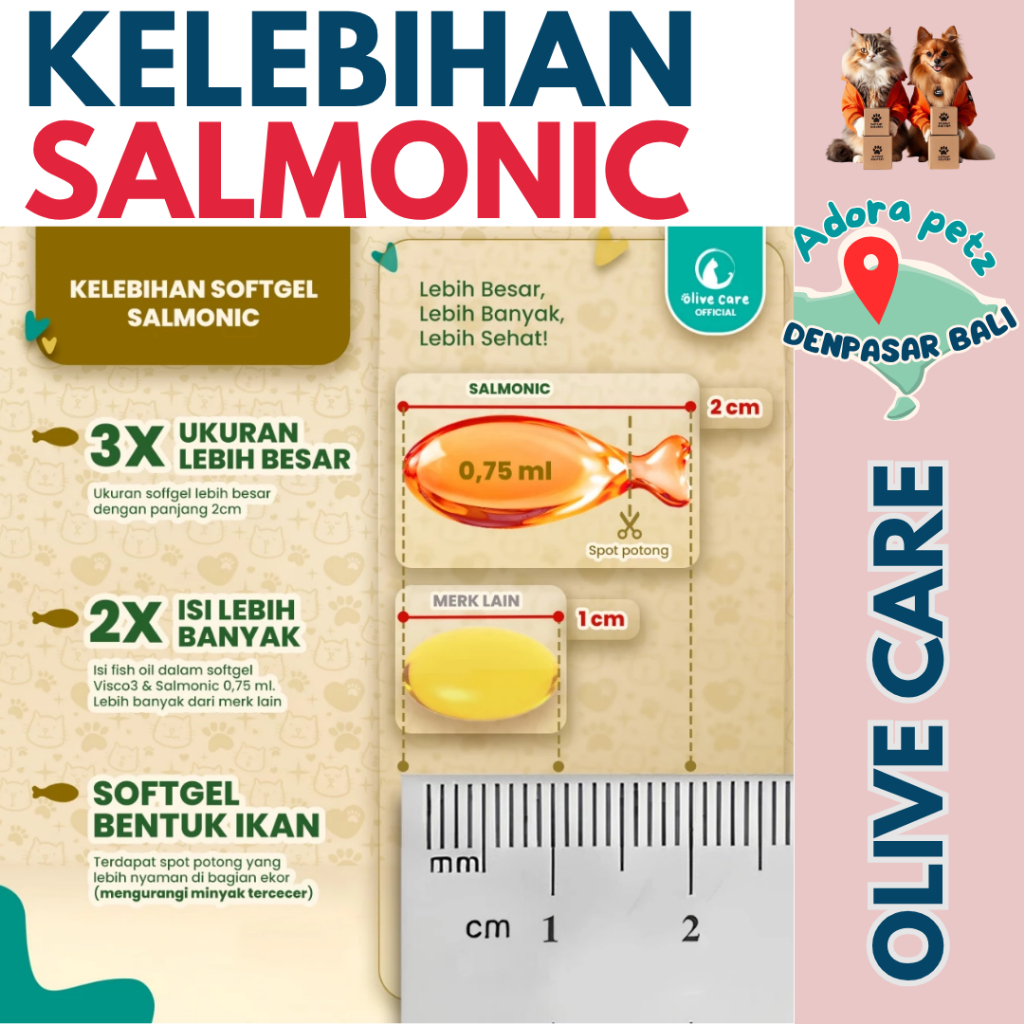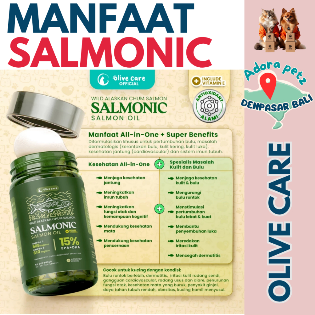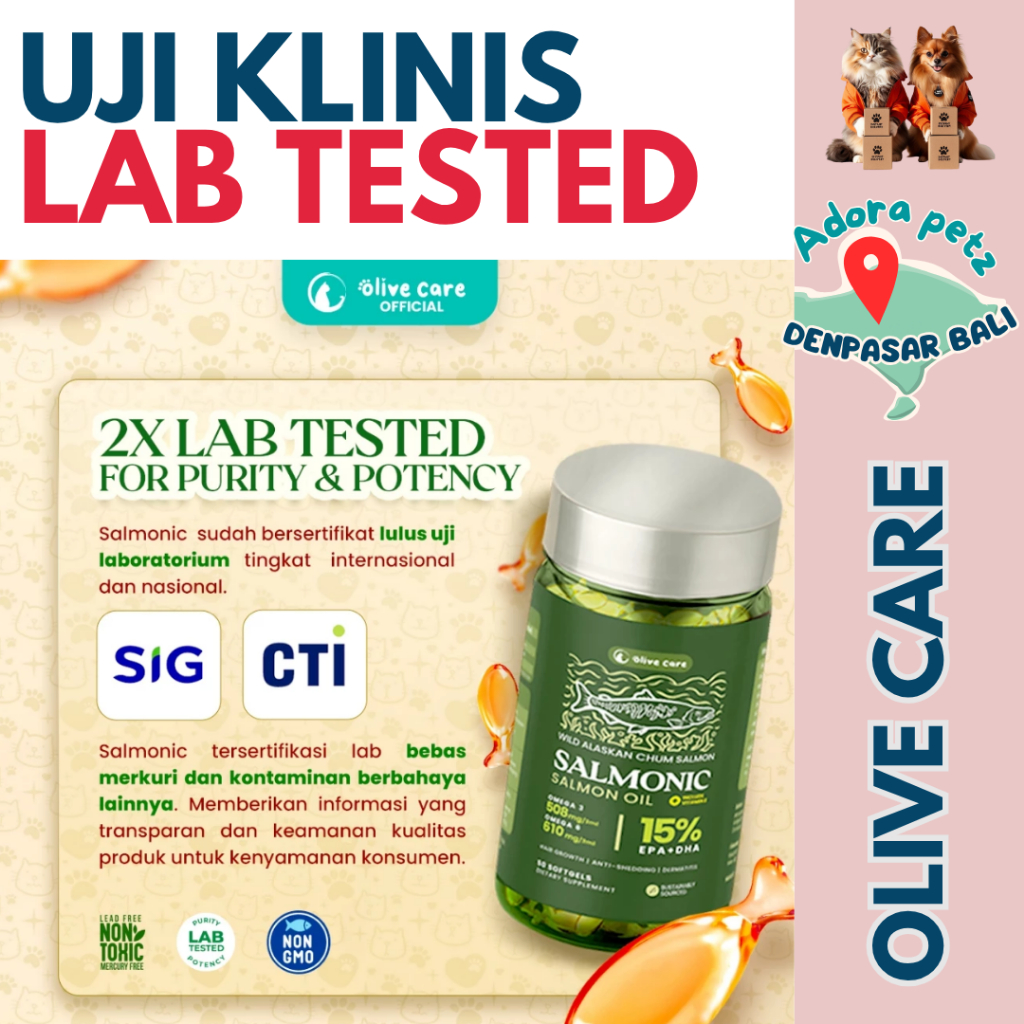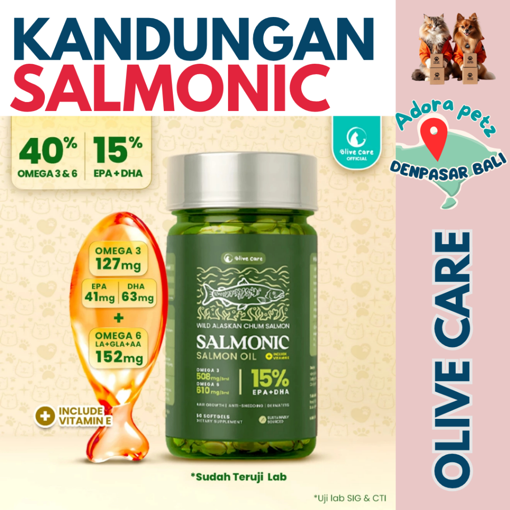 Olive Care Salmonic Softgel Kucing – Imun Kuat, Bulu Lebat, Rasa Enak untuk All Stages [Adora Petz]