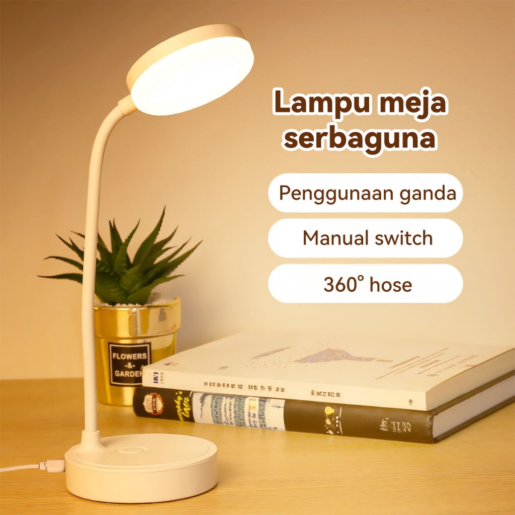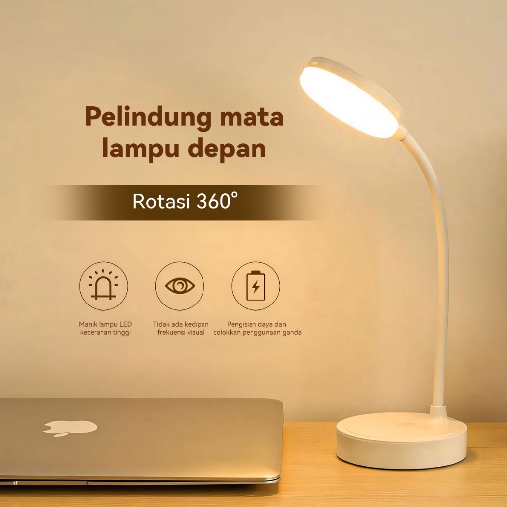 (FREE GIFT)Skylumba Lampu Belajar LED Rotasi 360 Derajat Portable Meja Belajar Lampu Tidur Pelindung Mata Profesional -