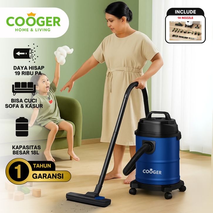 penyedot debu rumah kasur portable COOGER 15L Vacuum Cleaner Wet & Dry 19,000 PA 550 Watt Penghisap Debu Basah Kering V
