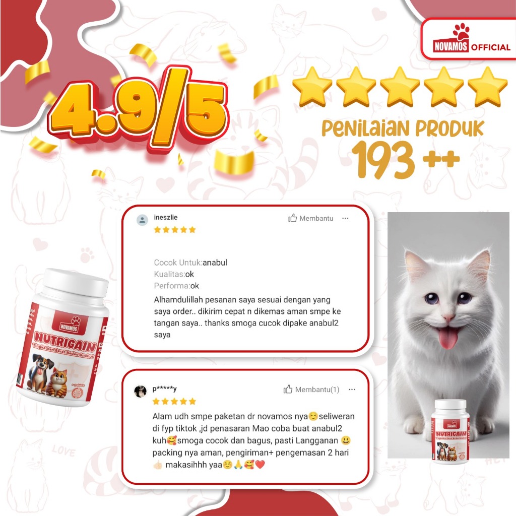 NOVAMOS Vitamin Penambah Nafsu Makan Kucing dan Anjing Tingkatkan Berat Badan & Imunitas - Nutrigain