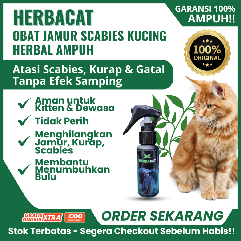Spray Jamur Scabies Kucing Herbacat | Aman untuk Kitten dan Dewasa Herbal Ampuh