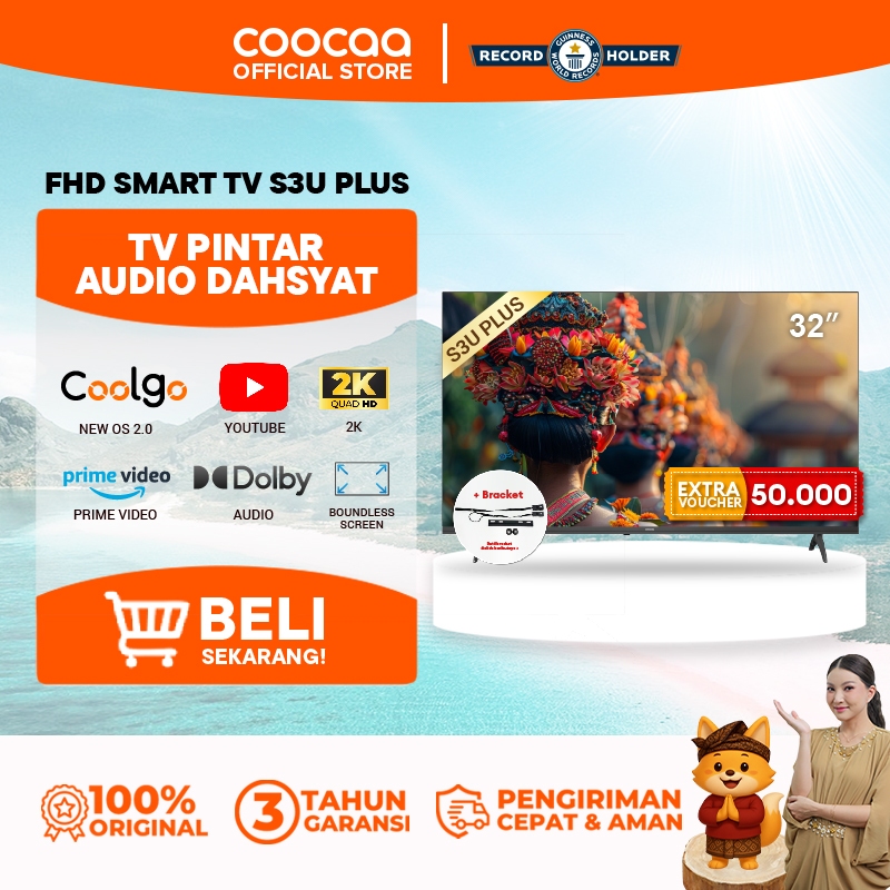 SMART TV COOCAA 32 INCH S3U PLUSCOOLITA 3.0 2K LED YOUTUBE PRIME VIDEO DOLBY AUDIO BRACKET GARANSI RESMI