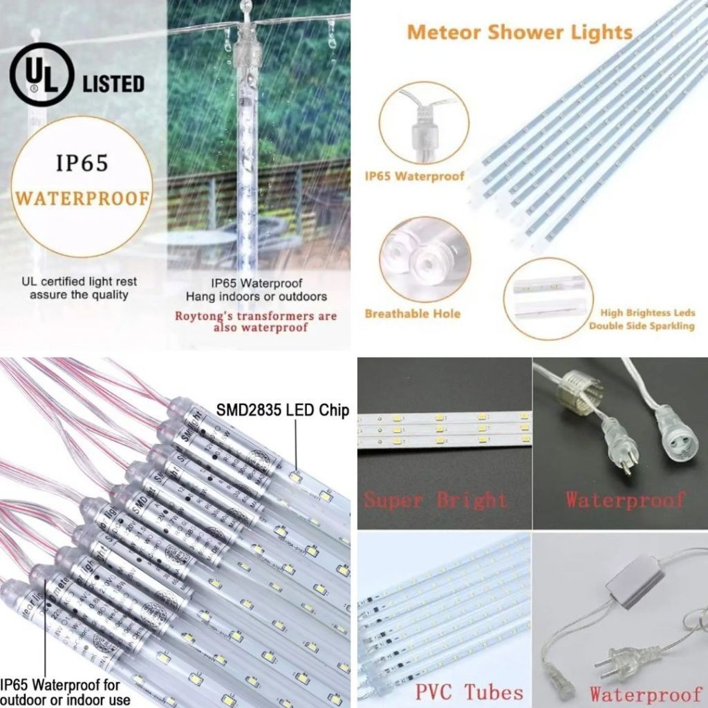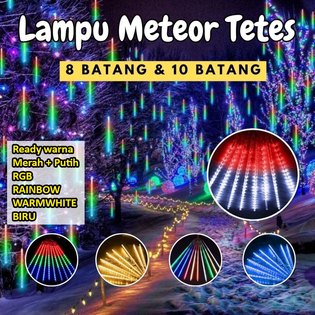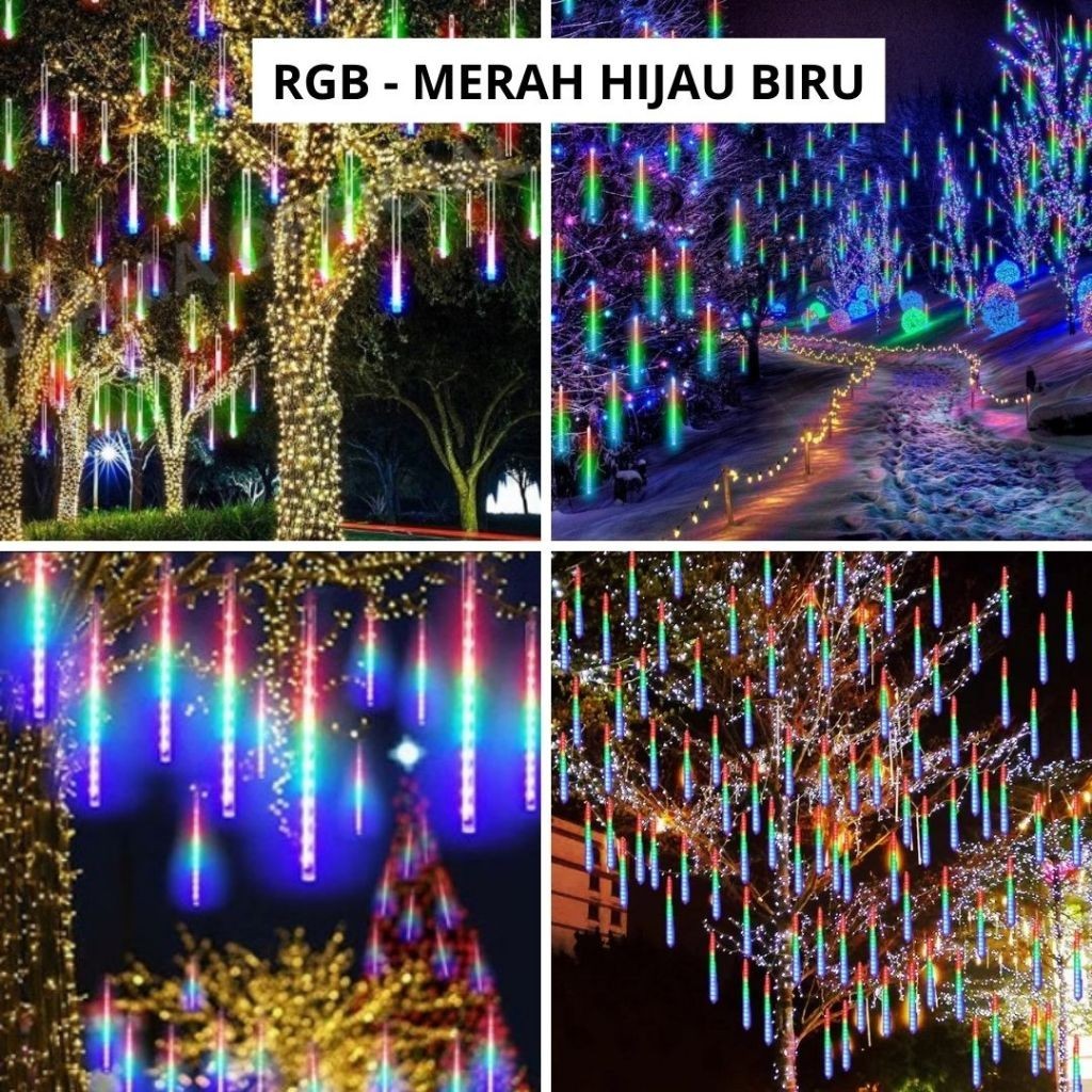 GERATIS ONGKIR PROMO Lampu Meteor LED Hujan 50cm RGB RAINBOW WARNA WARNI BIRU WARMWHITE KUNING 1 set 8Batang 10Batang 8