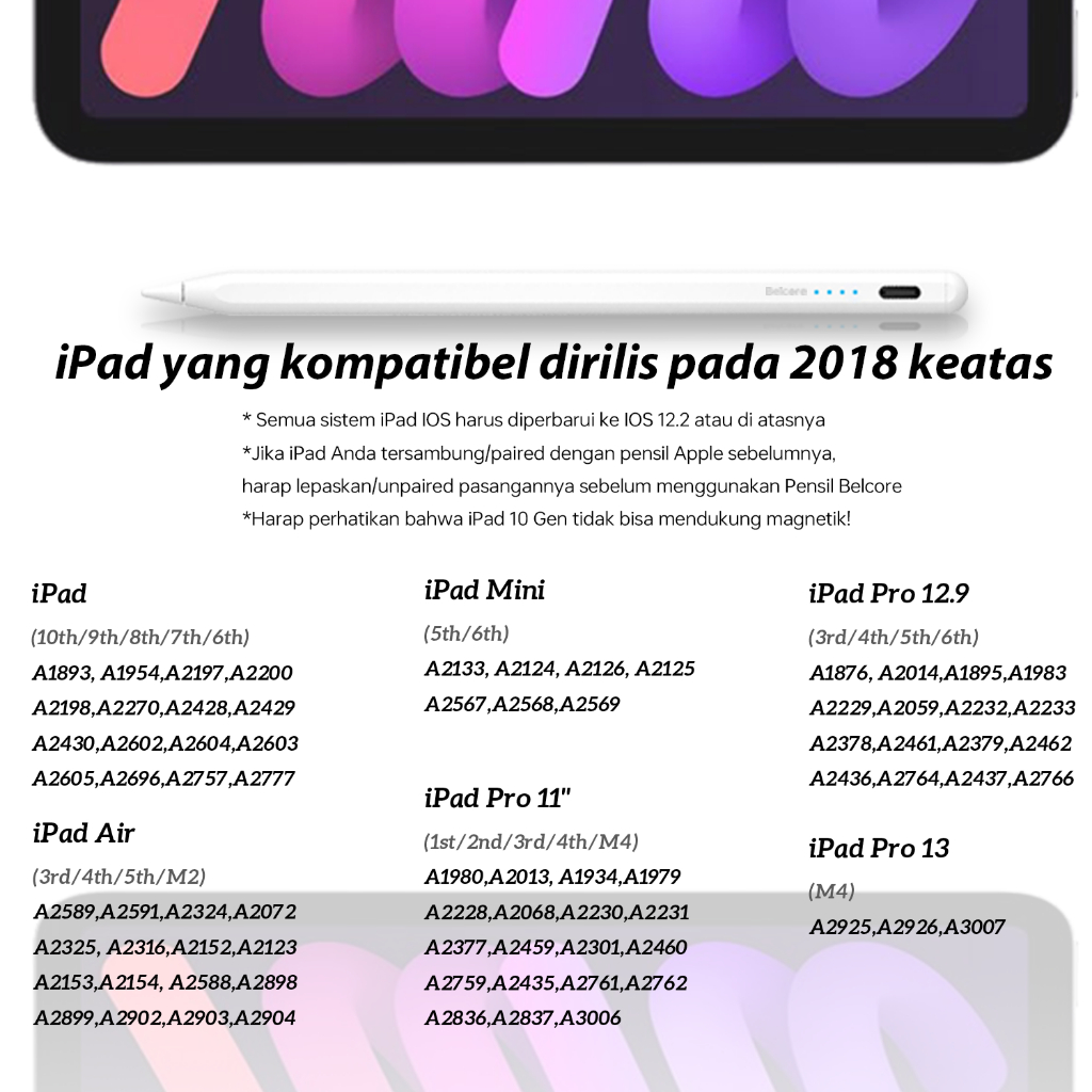 [Mall] Belcore Stylus Pen iPad pencil Pro 2 for iPad pen with Palm Rejection , 1 kunci kembali,fungsi pintasan,Tampilan