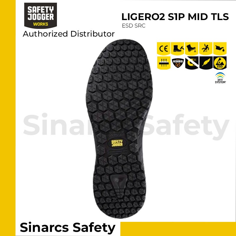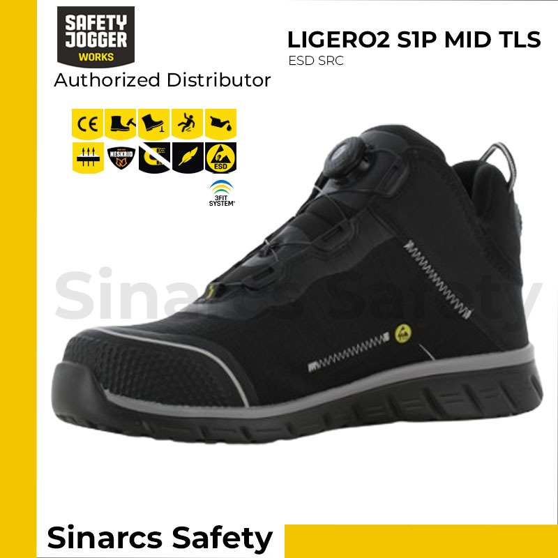 SEPATU SAFETY JOGGER LIGERO2 S1P MID TLS - BLACK / HITAM