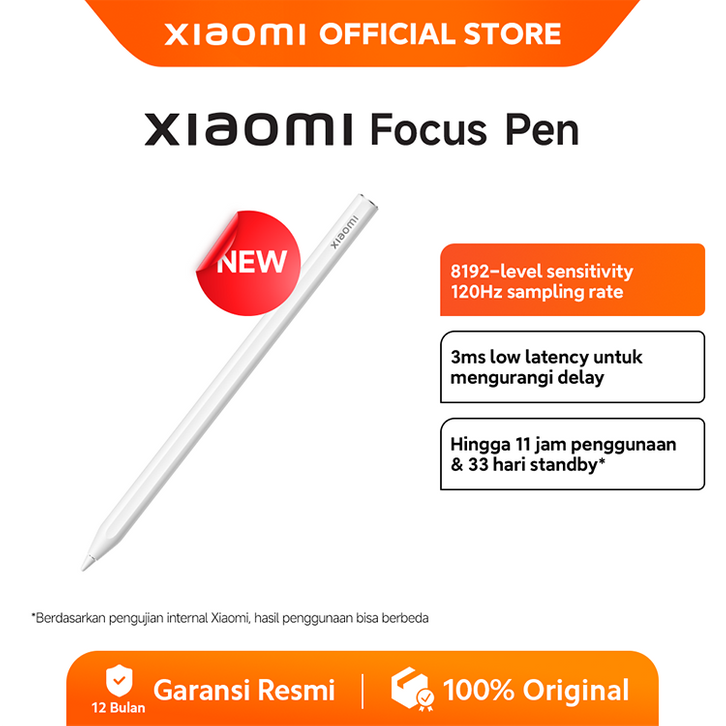Xiaomi Focus Pen | 8192-level sensitivity | 120Hz sampling rate | 3ms low latency |11 jam penggunaan & 33 hari standby