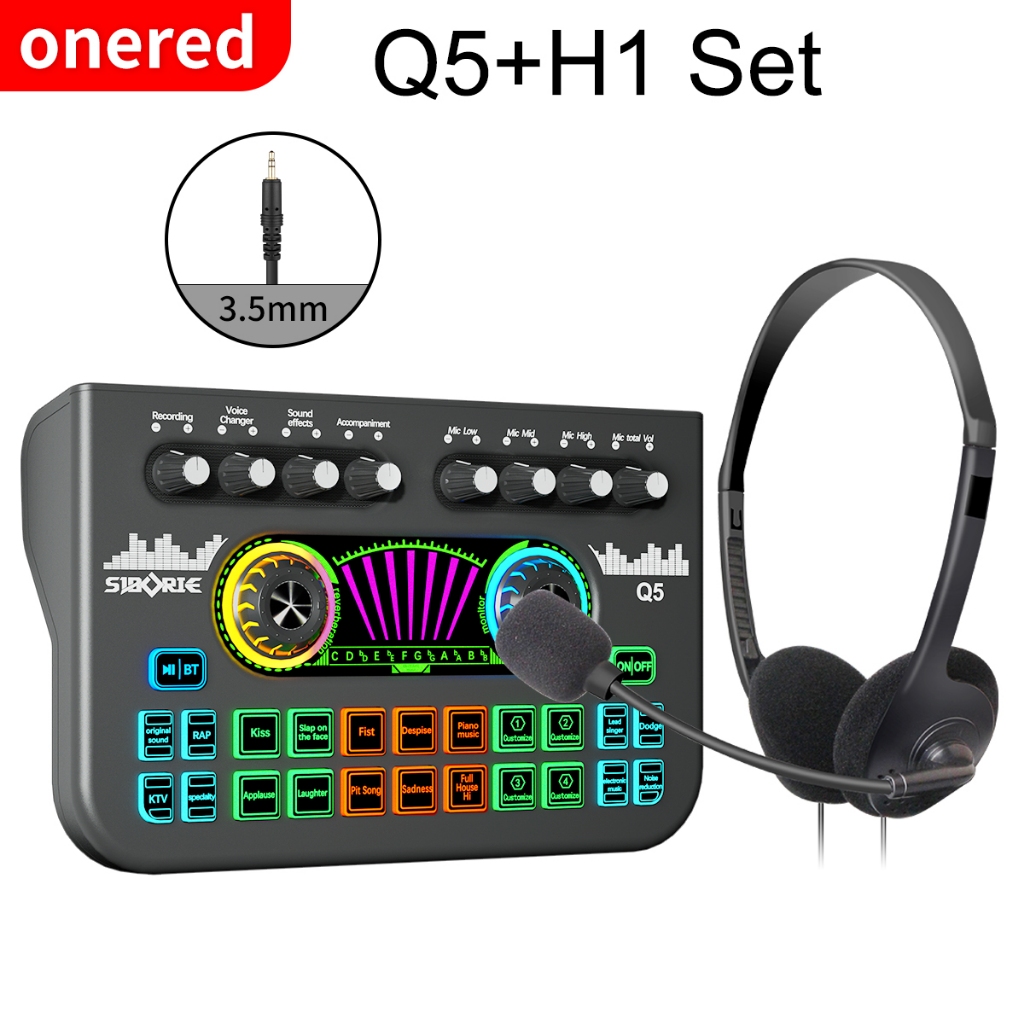 Onered Q5 Soundcard Original Paket Lengkap Mixer Bluetooth sound card for Streaming Langsung Siap
